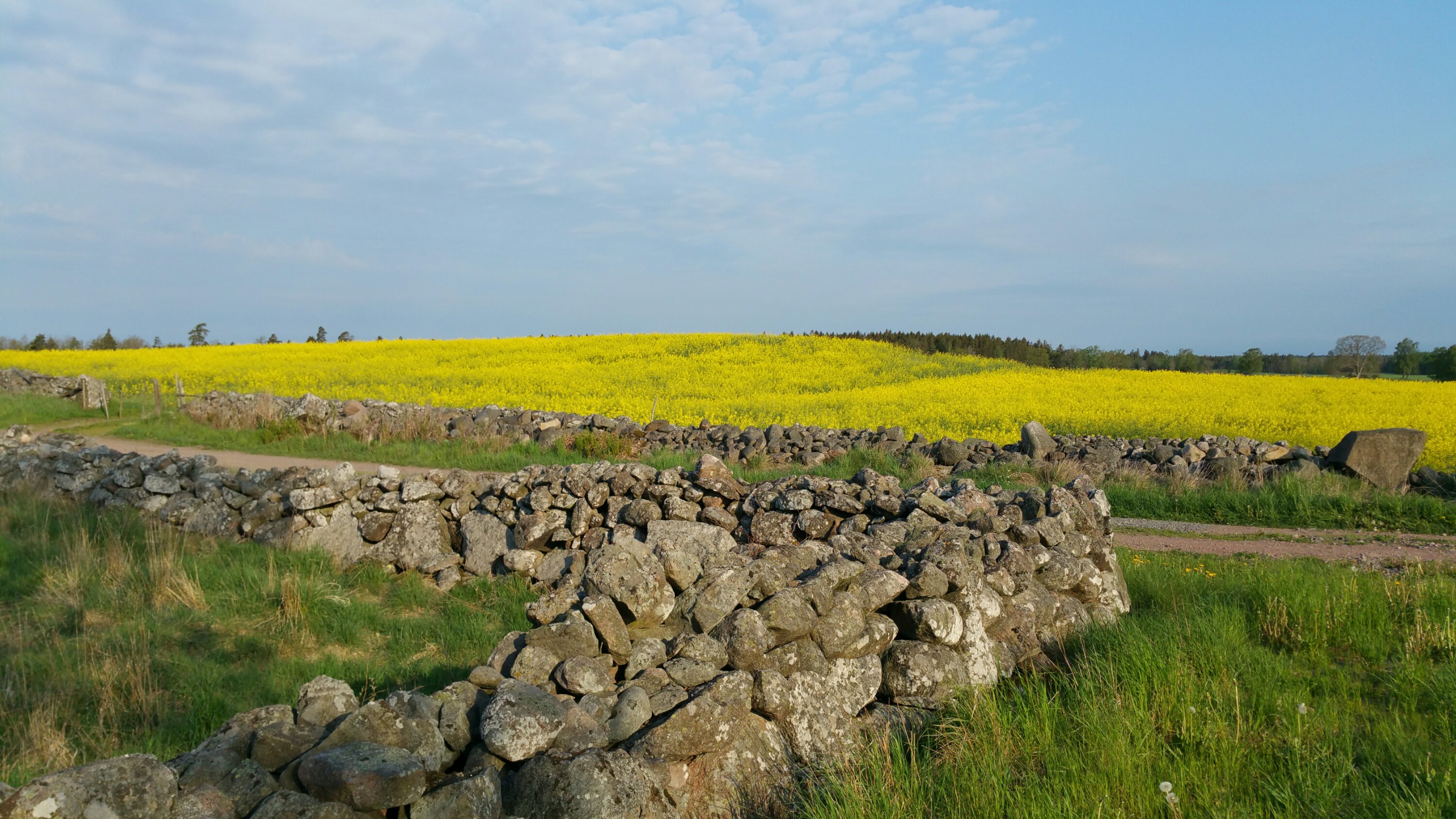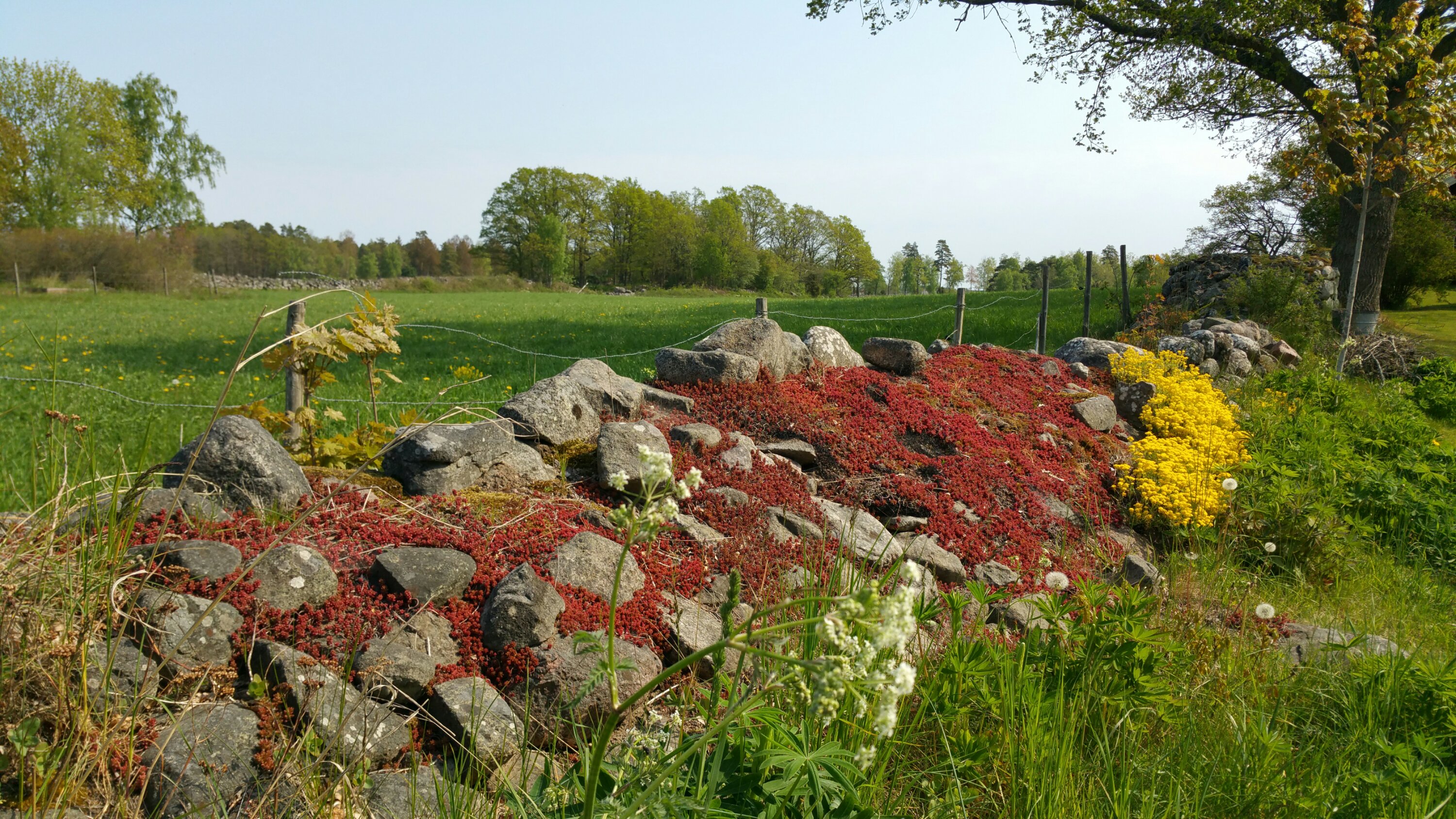 Ich mag diese oftmals kilometerlangen und bis zu etwa 1 m breiten Steinwälle. Wie viele Menschen haben hier mühsam ihre Ländereien eingefriedet und wie exakt sie oftmals gebaut sind! Für mich ist so ein Wall wunderbar lebendig. Kein Meter gleicht dem anderen, überall ist Leben zwischen den Fugen und oft sind sie dicht mit Moos oder Blumen bewachsen.