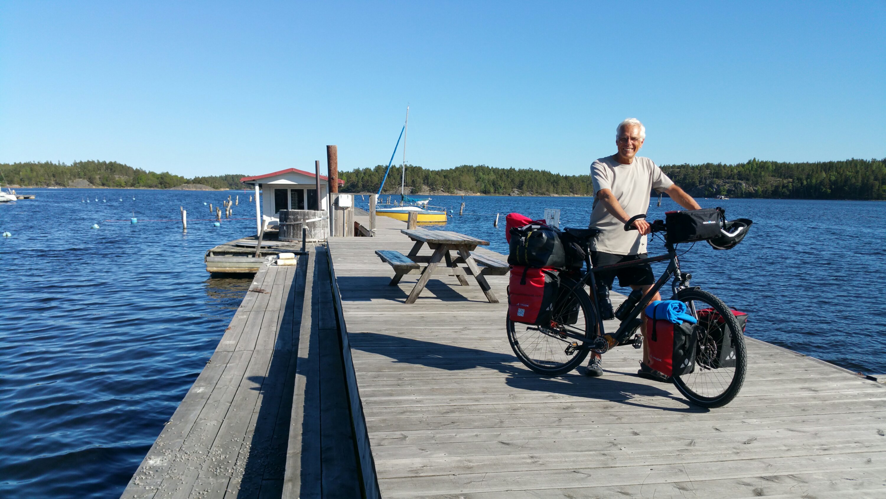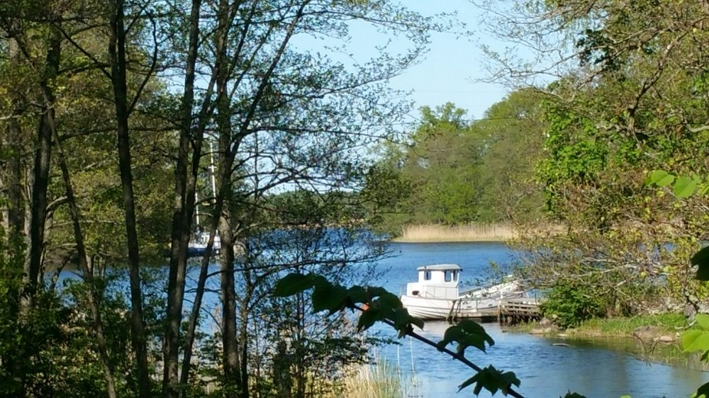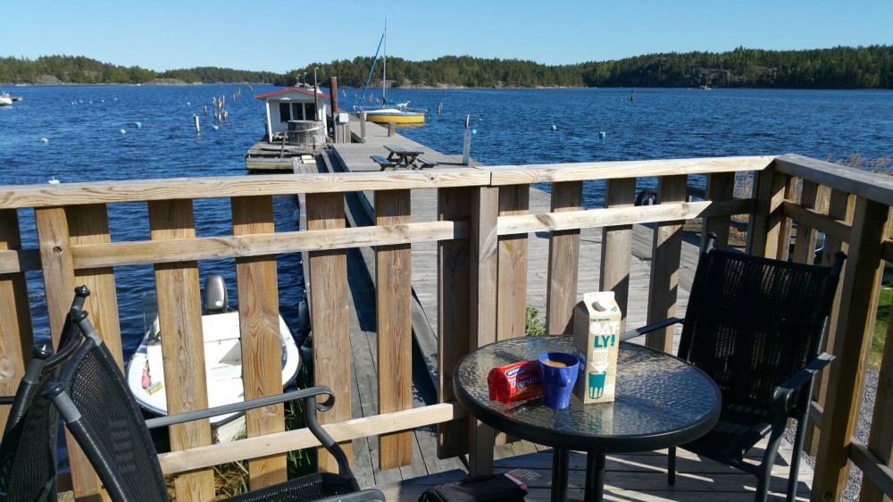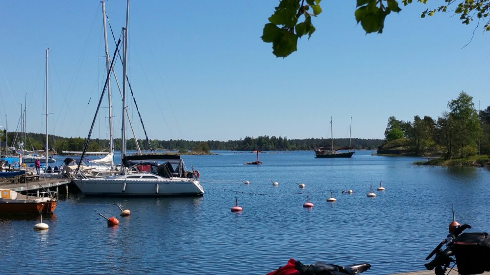 Am späten Nachmittag komme ich nach Blankaholm. Direkt am kleinen Hafen stoße ich auf eine kleine Terrasse und genieße hier eine Tasse Kaffee mit Haferdrink, den ich dazu natürlich aus meiner Packtasche rauskramen muss…