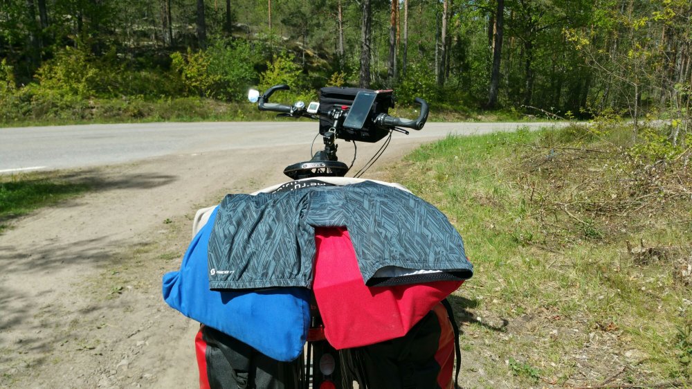 Um 9.30 ist alles verstaut, zum Abschluss kann ich noch schnell ein T-Shirt und eine ‚Radlerhose‘ auswaschen und auf geht es bei strahlendem Sonnenschein nach Loftahammar.
