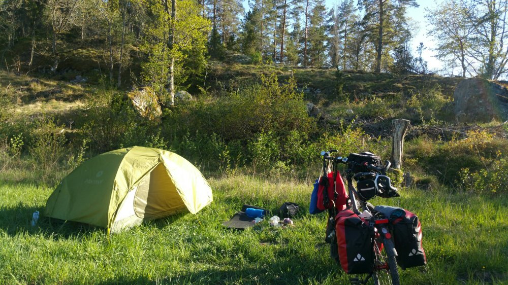 Ich hatte gehofft, über die Vermittlung von Göran in Loftahammar eine Übernachtung zu bekommen. Da ich nichts mehr von ihm gehört habe, ist daraus offensichtlich nichts geworden. Ich fahre also weiter , um mir außerhalb eine gute Stelle zu suchen. Allerdings werden daraus nochmals etwa 10 km. Da kein See in der Nähe ist, wird es ein sehr einsames Plätzchen weit ab vom nächsten Haus…