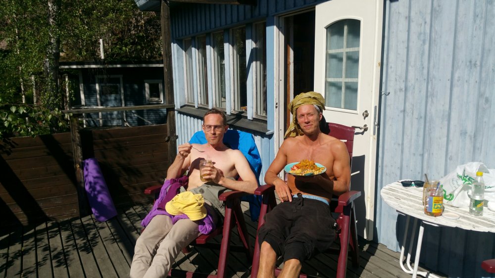 Johan hat für unterwegs leckeres veganes Essen zubereitet, welches wir auf der Terrasse bei Gohan genüsslich verspeisen.