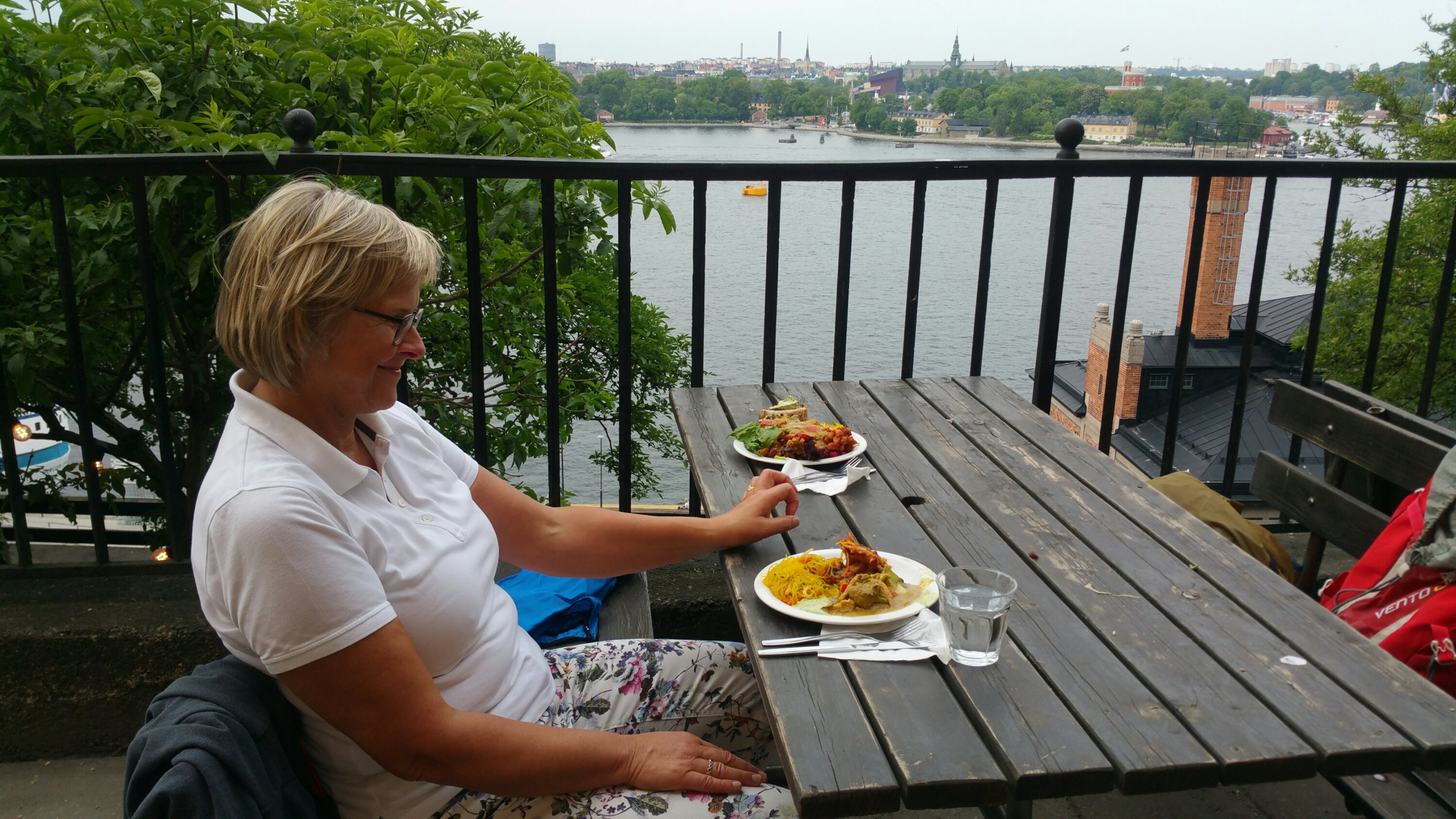 Am Abend feiern wir den Tag bei einem köstlichen vegetarischen Essen vom Buffet im ‚Hermans‚ und erfreuen uns an dem großartigen Blick über die Stadt.