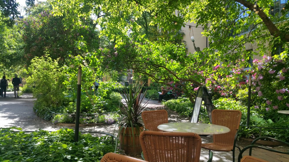 Hier kann man mitten im Zentrum in einer gemütlichen begrünten Insel der Ruhe verweilen…