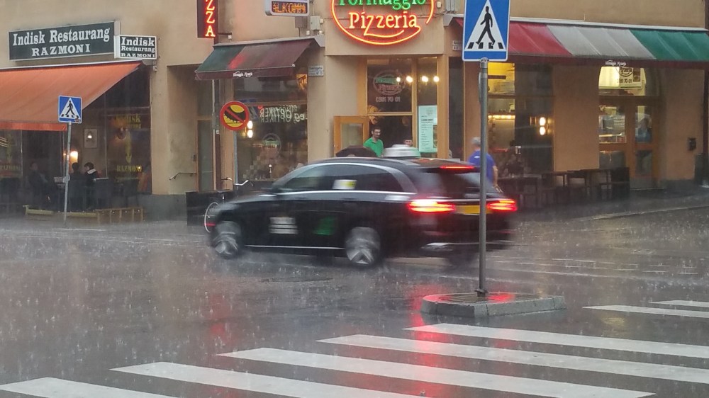 Stockholm weint und donnert bei unserer Abreise und es gelingt mir nur knapp, in einer Einkaufspassage Schutz zu finden …