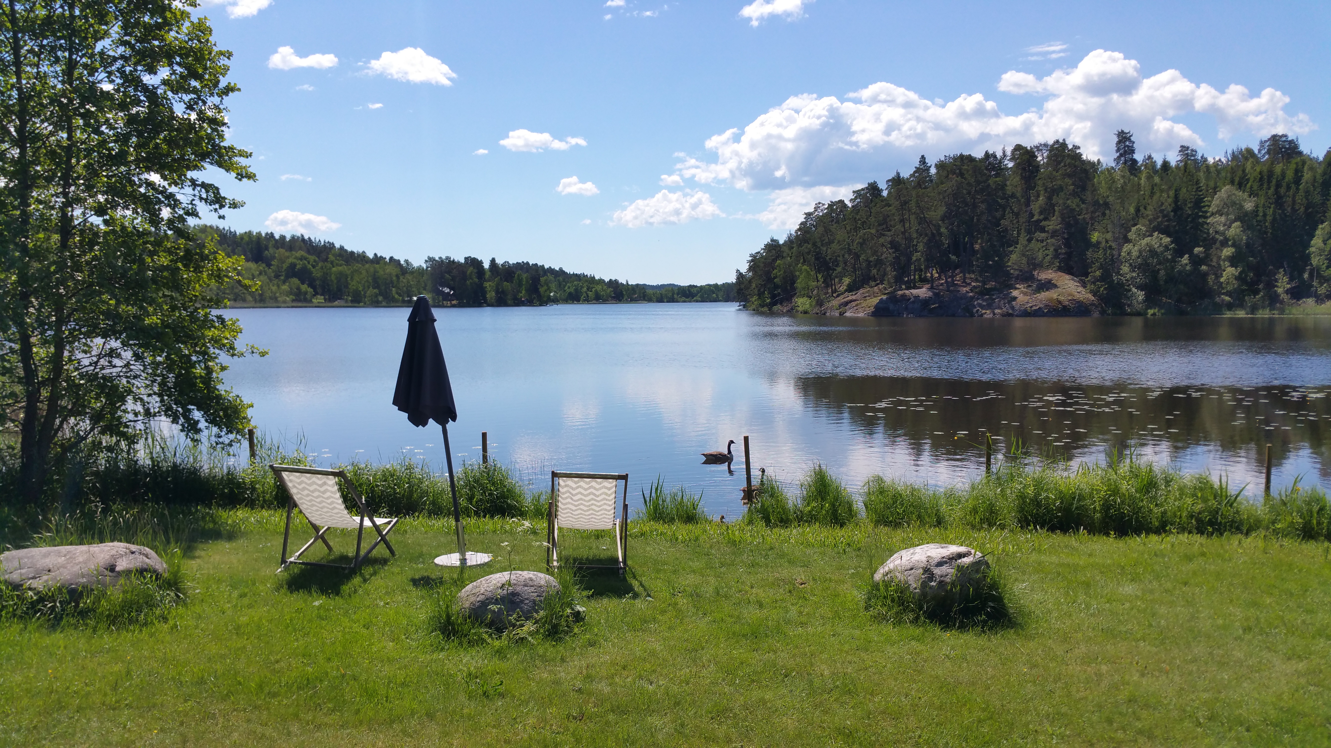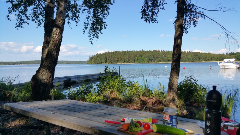 Ich bin froh, Stockholm nun wieder verlassen zu können und freue mich auf die Strecke an der Südseite des Mälaren Sees entlang.  Meine Freude wird allerdings auf eine Geduldsprobe gestellt, denn die ersten 40 km sind geprägt von viel Autoverkehr und Lärm. Es ist enorm, wie weit das hektische Umfeld einer Großstadt reicht. In Salem treffe ich auf eine Familie, die gerade auf ihrer Terrasse sitzt und frage nach Trinkwasser. Zu meiner Überraschung und Freude erhalte ich auch noch ein Sandwich verbunden mit den besten Wünschen für die weitere Tour!