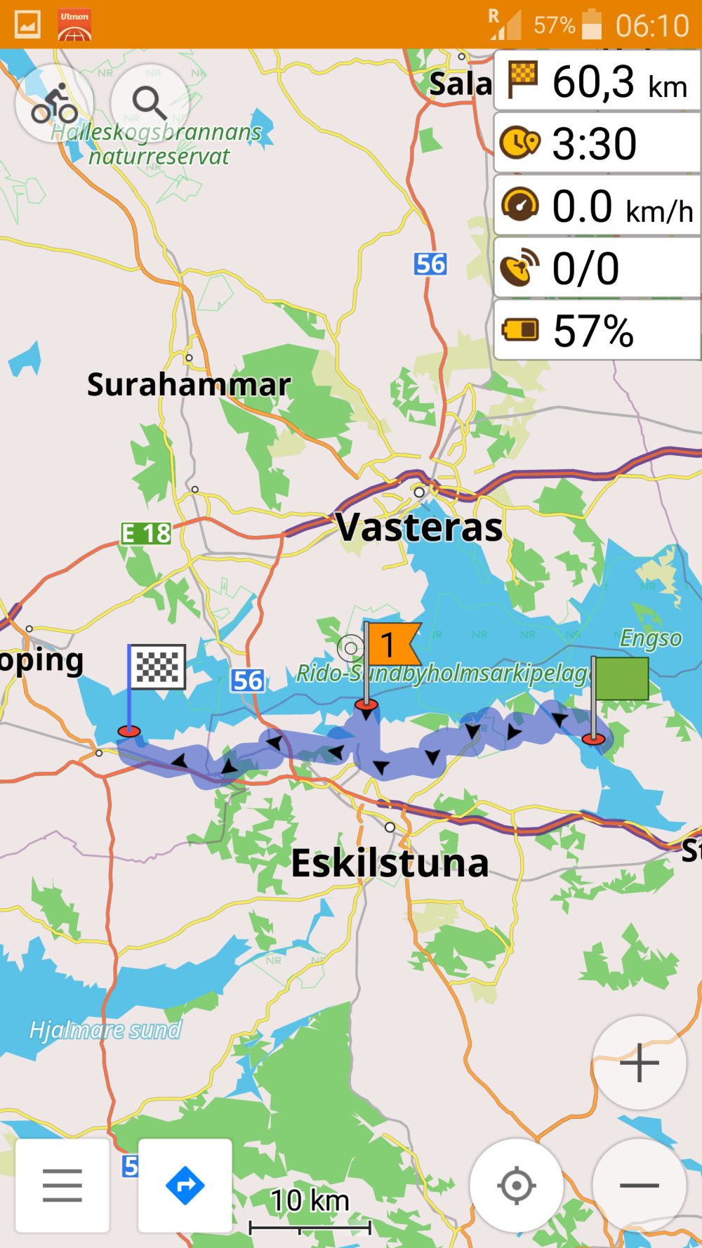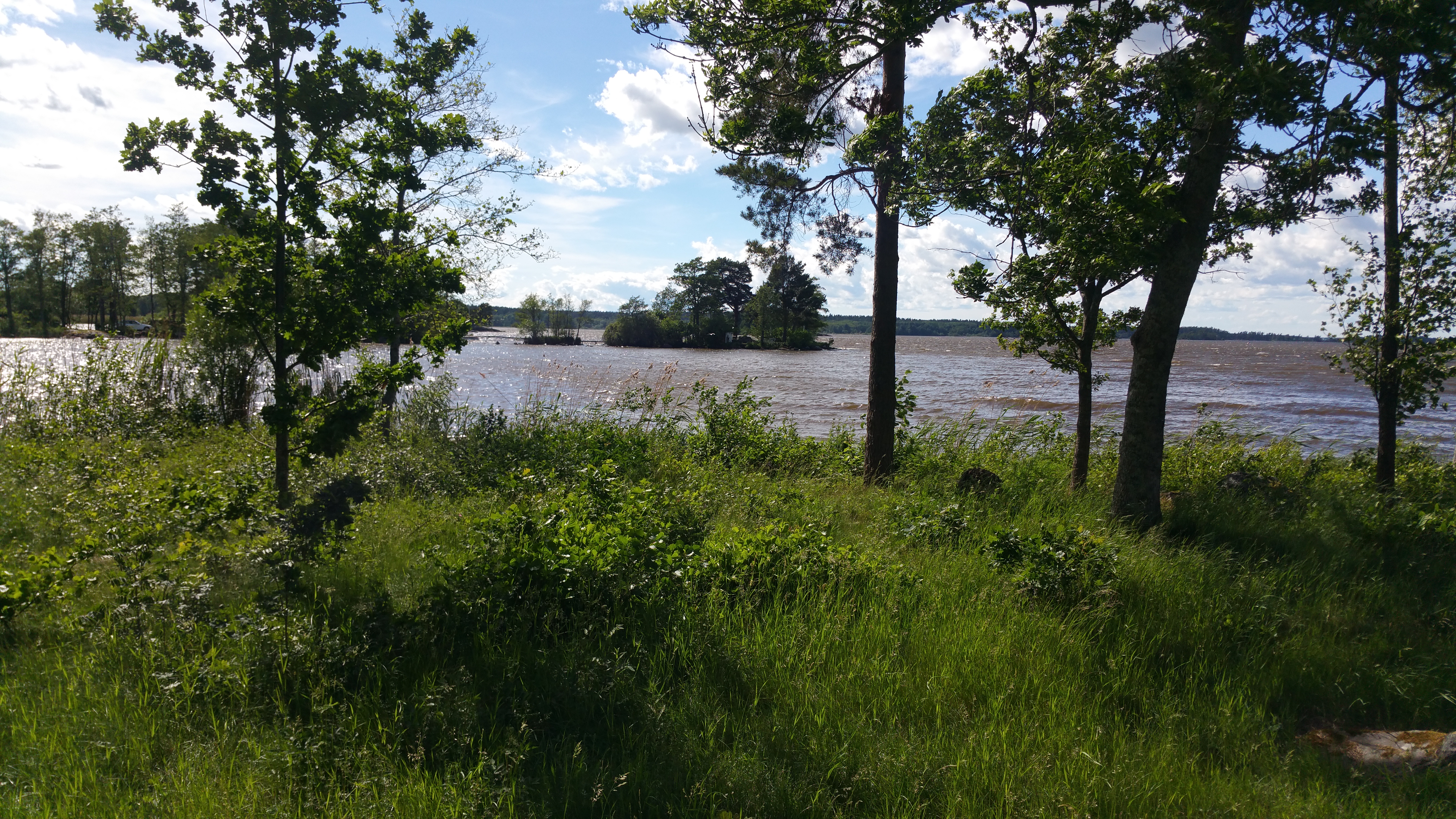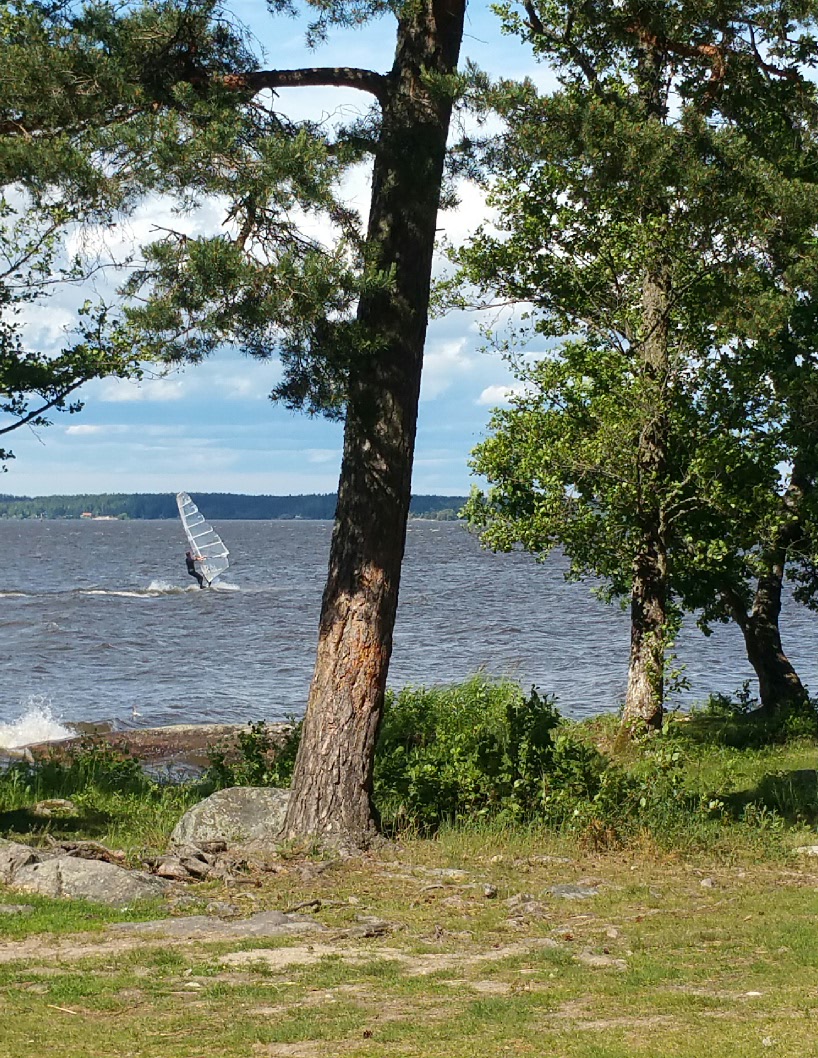Heute bin ich unterwegs an das Ende des Mälaren. Bei wunderbarem Wetter und Temperaturen um 25° erfreue ich mich an böigem Gegenwind, denn er wirkt erfrischend und kühlend. So ändert sich die Perspektive! Zu Beginn meiner Reise war der Wind kalt und unangenehm, heute bin ich froh, dass es ihn gibt.