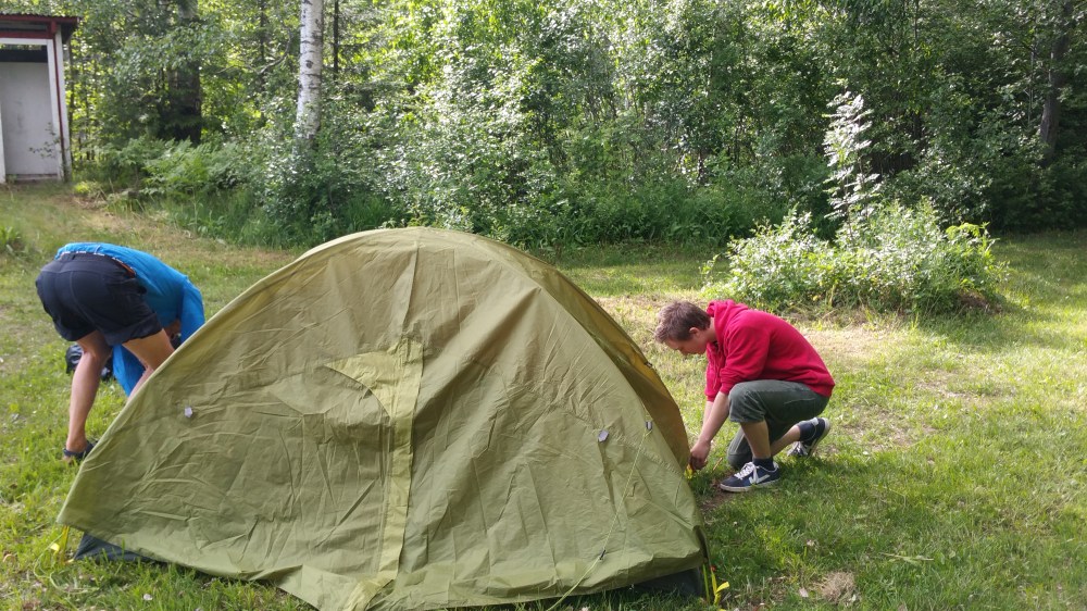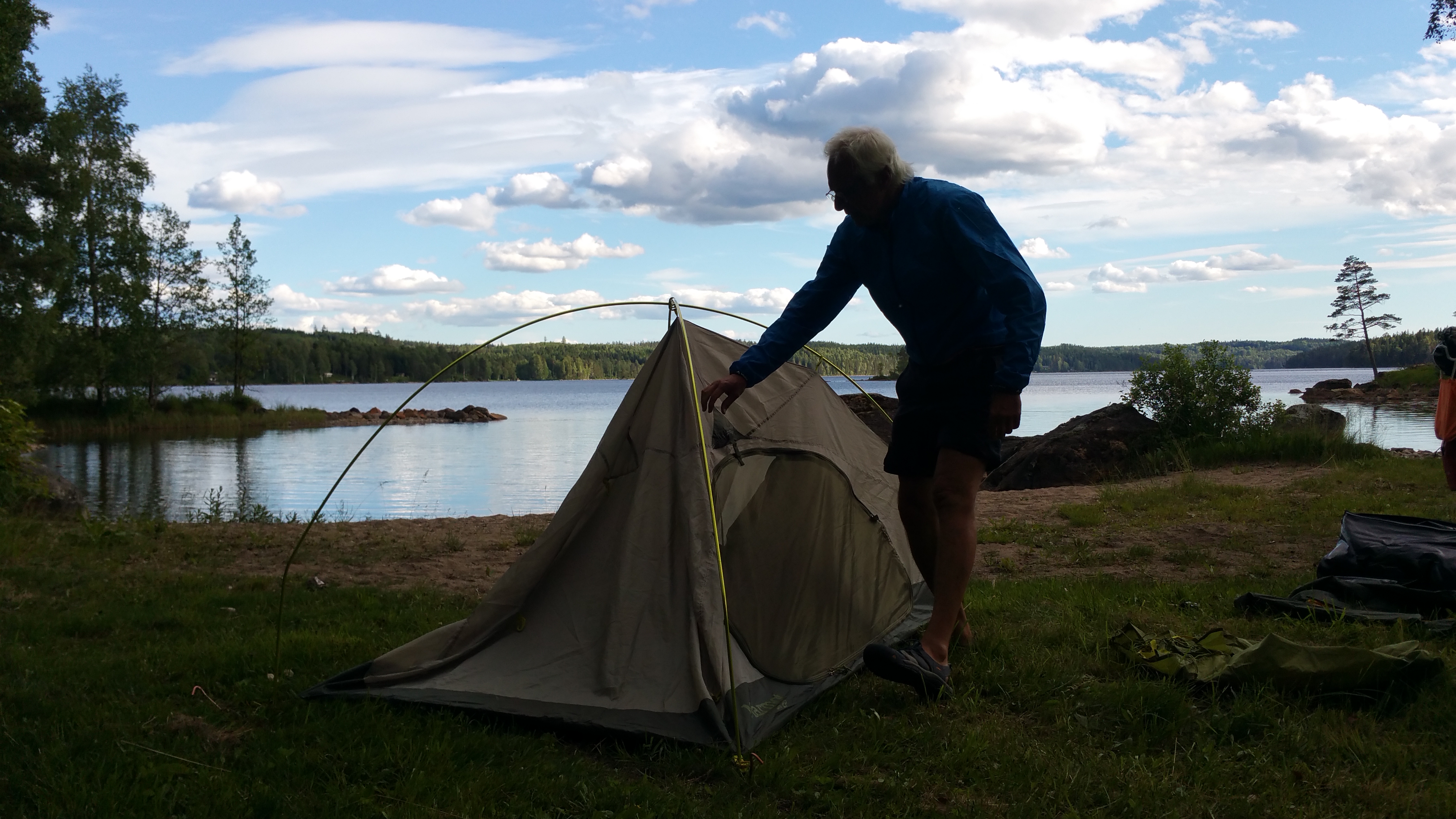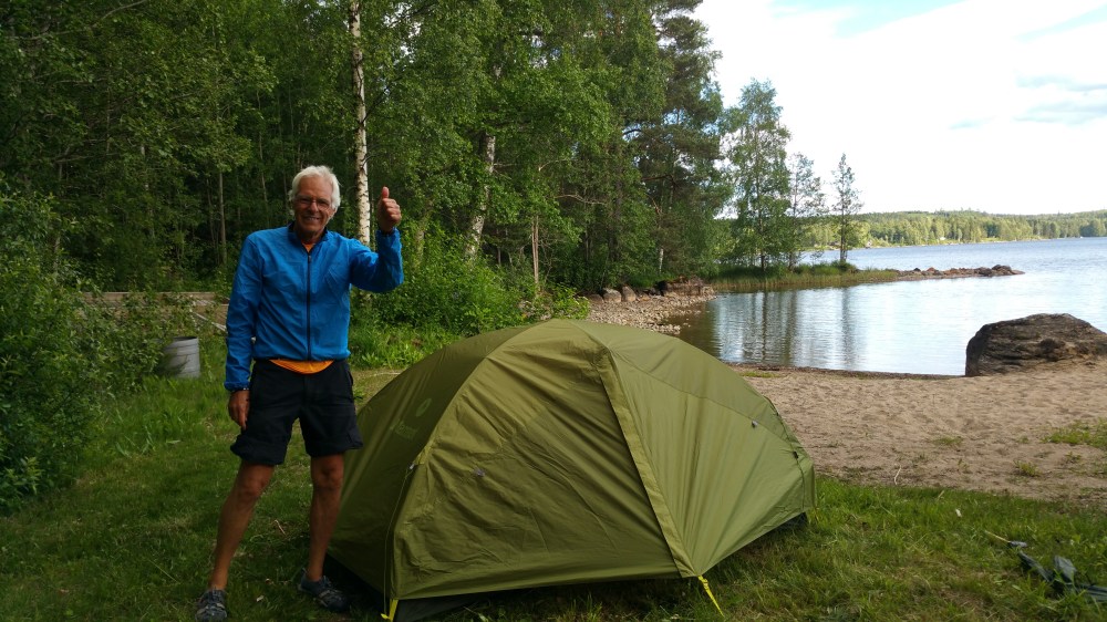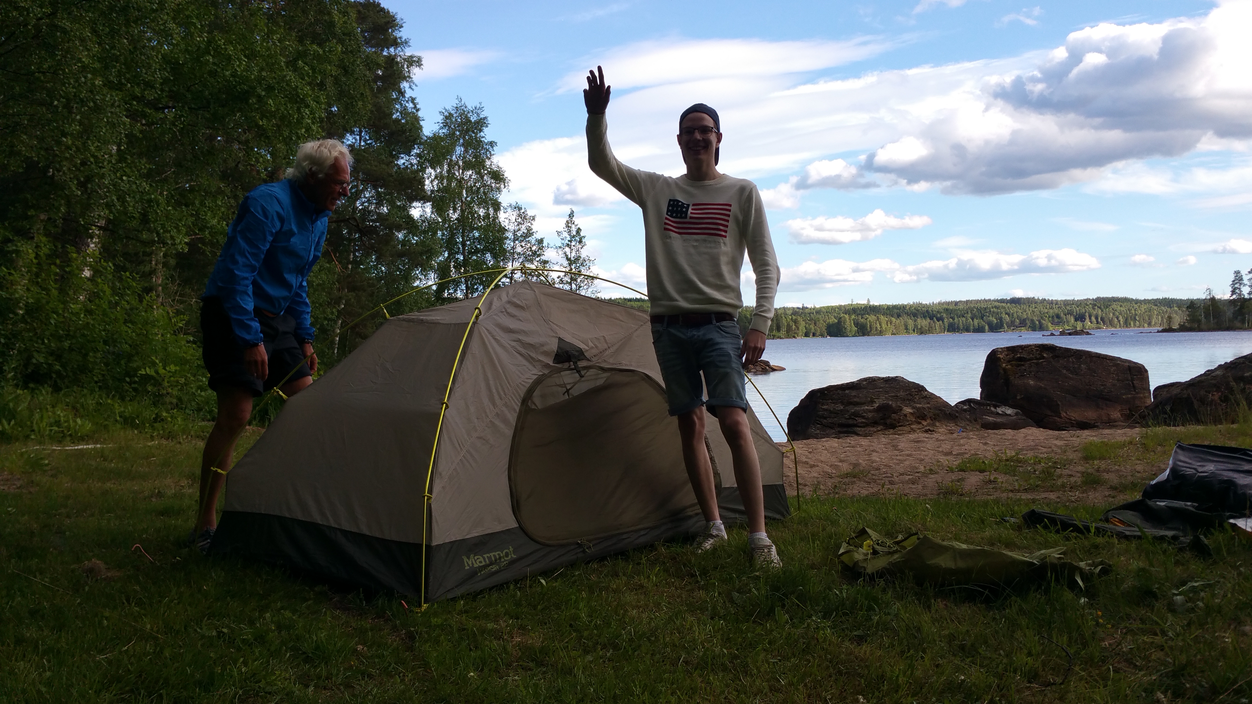 Am Abend lande ich schließlich am Alvlangen See und als ich gerade das Zelt aufbaue, tauchen Sebastian und Gustav (links) auf.