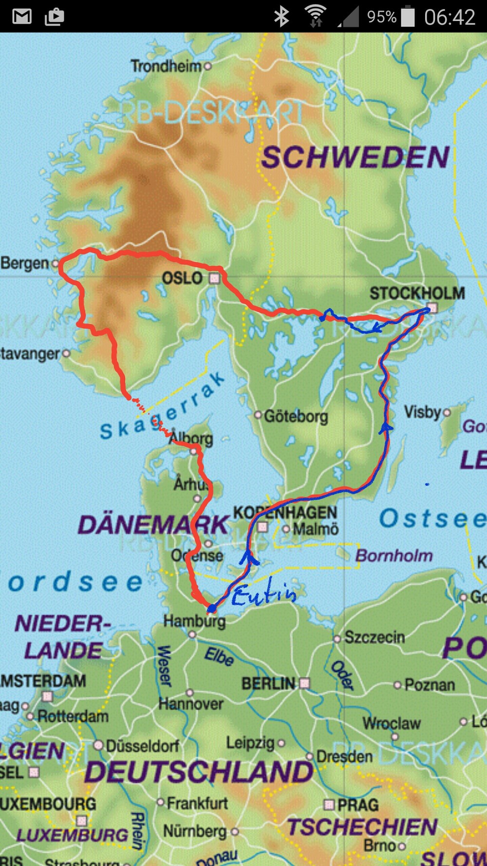 Ich finde es manchmal sinnvoll, am eingeschlagenen Kurs nicht um jeden Preis festzuhalten, sondern flexibel zu bleiben.Solch eine Situation ist für mich heute früh eingetreten, da der Westwind immer noch sehr kräftig bläst. Ich spüre, dass mir die heutige Fahrt bevorsteht und entschließe mich zu einer Kursänderung. Ich werde heute überwiegend nach Süden fahren und dann später Oslo südlich umfahren, indem ich die Fähre von Moss nach Horten nehme.