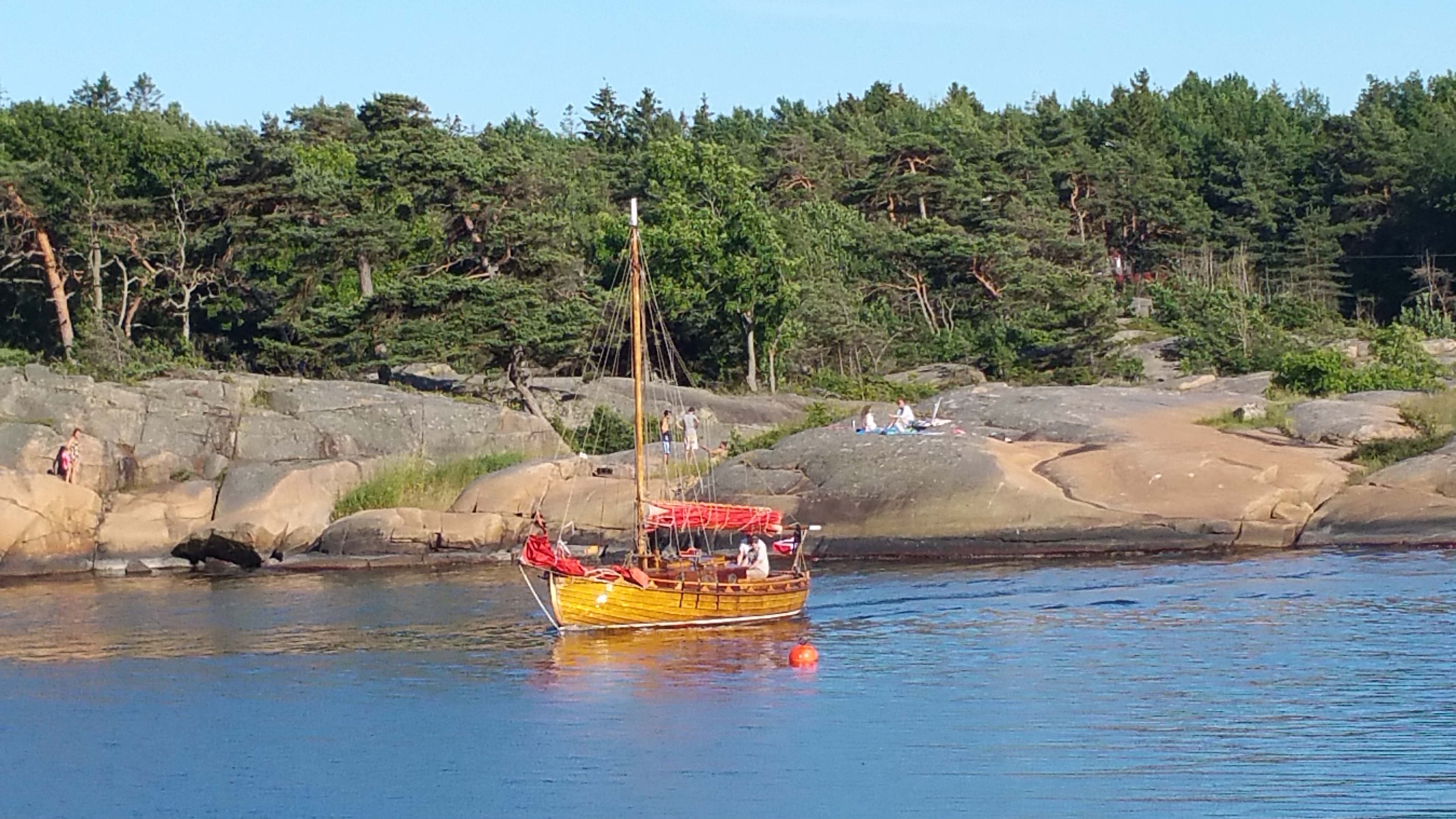 Ich unterhalte mich länger mit Eirik und die beiden nehmen mich mit zu einer herrlichen Küste mit verschieden Bademöglichkeiten! Eirik ist Gitarrist, spielt in verschiedenen Bands und war auch schon zu Auftritten in Deutschland. Hier ein