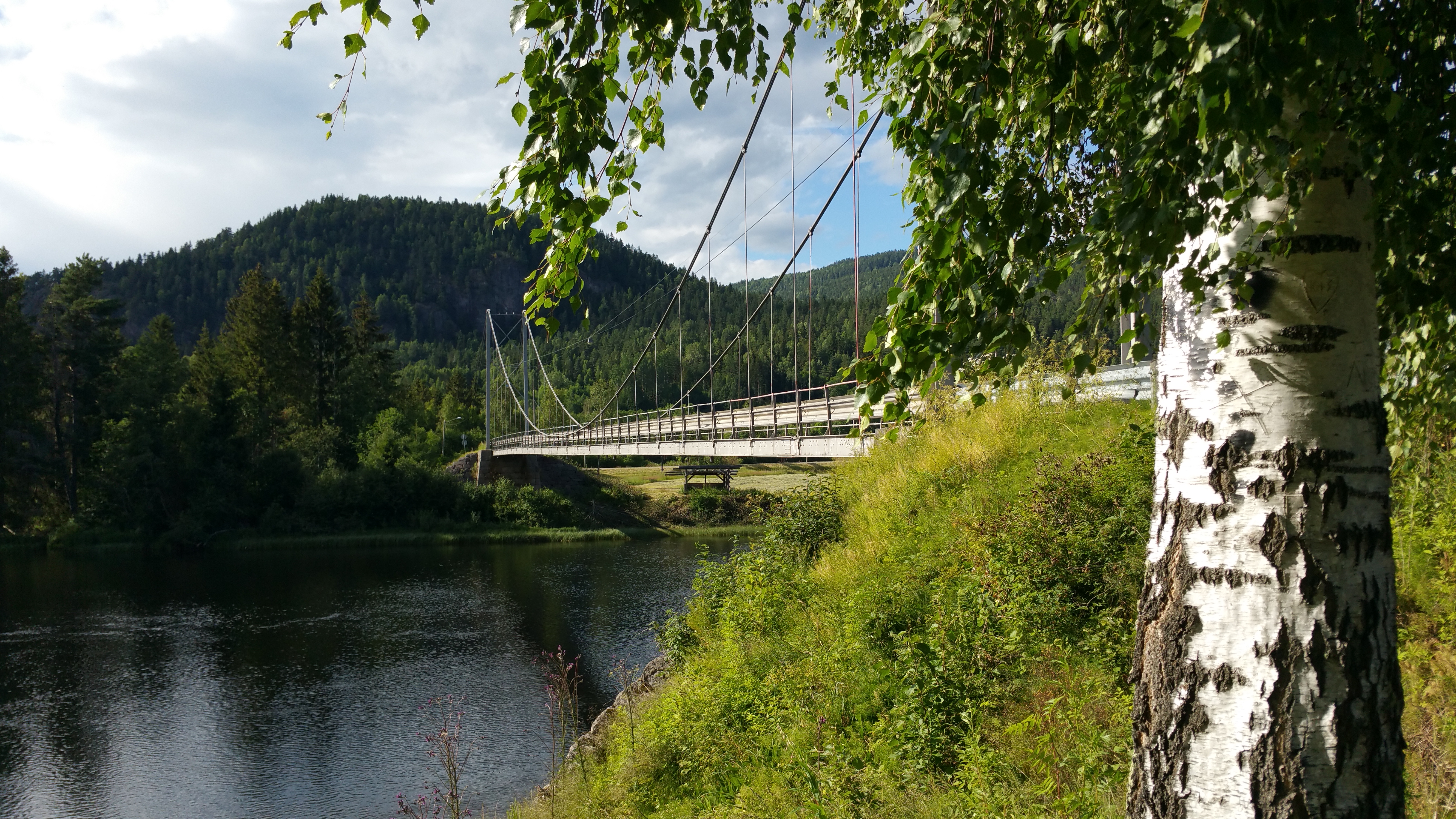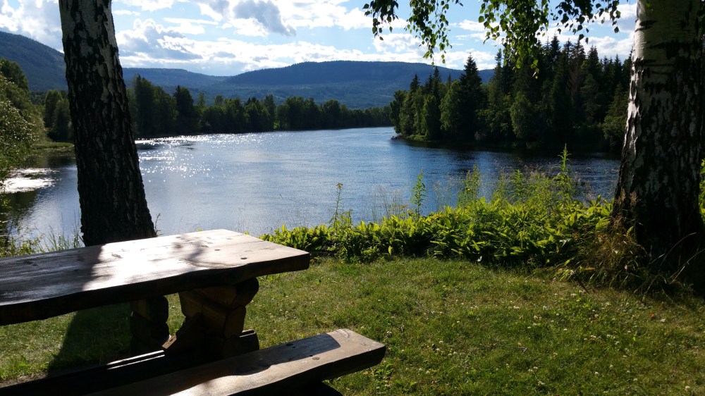 In Hvittingfoss kaufe ich noch ein paar Sachen ein und finde einige Kilometer später am Fjordveij 40 Richtung Kongsberg eine schöne Stelle am Lågen Fluss.