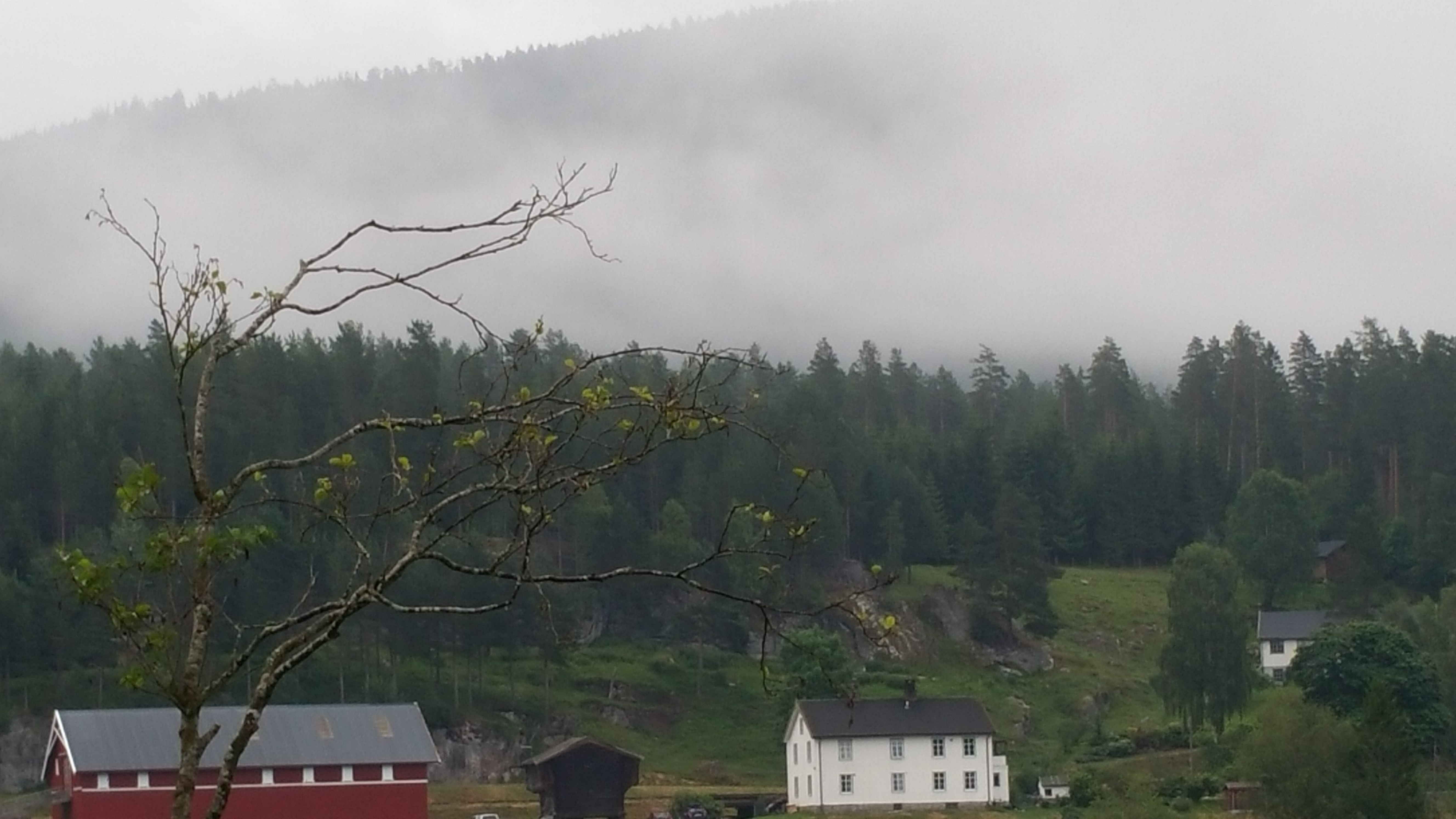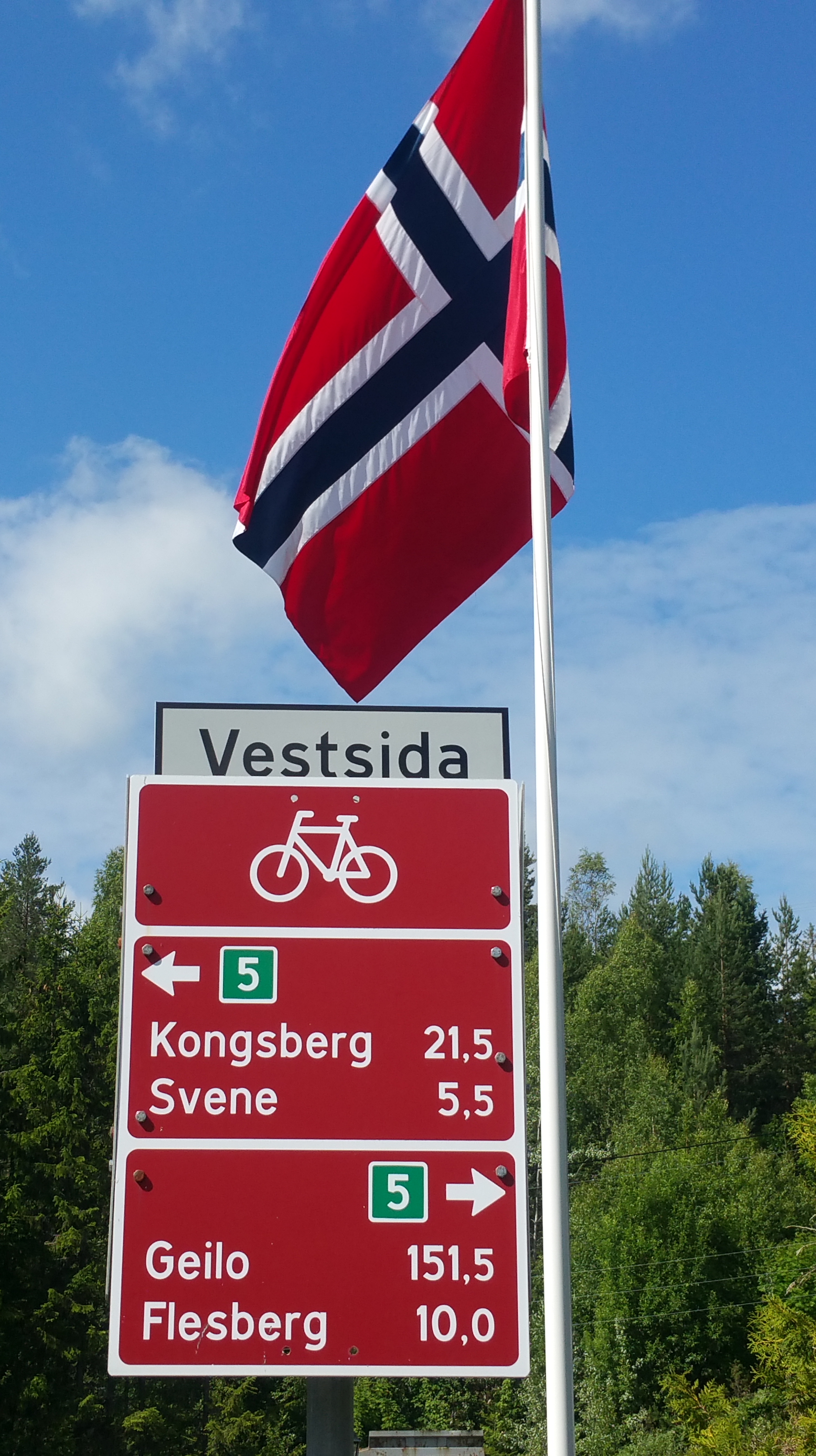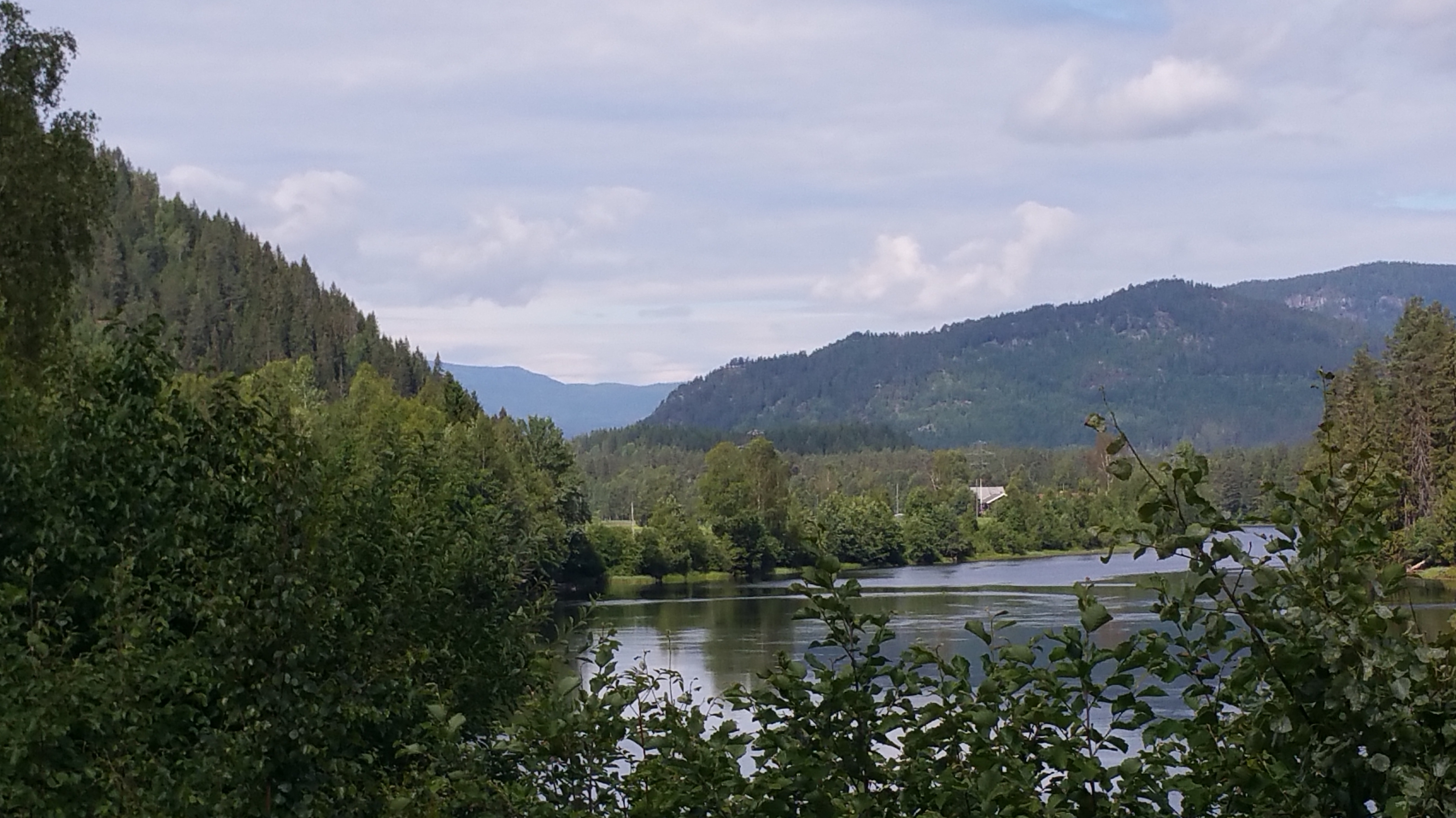 Die ganze Nacht Verkehr – ich meine Straßenlärm 😉 – und am frühen Morgen taucht der Gärtner mit der Motorsense auf und veranstaltet eine Höllenlärm. Ohne Frühstück flüchte ich mich auf den nächsten Rastplatz am Fv 40 und ‚genieße‘ den nicht ganz so schlimmen Autolärm … Die nächsten 50 Kilometer orientierte ich mich am Radweg 5, der von Larvik bis Geilo durch das Numedal führt.