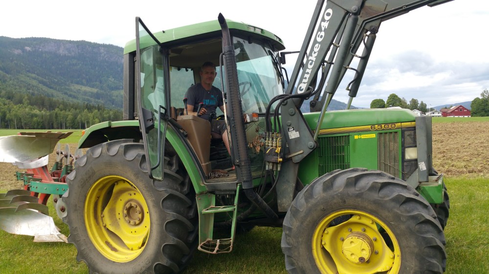 Ich komme bei Rune vorbei, der gerade seinen Acker pflügt und frage ihn, ob er irgenwo ein schönes Plätzchen im Angebot hat.