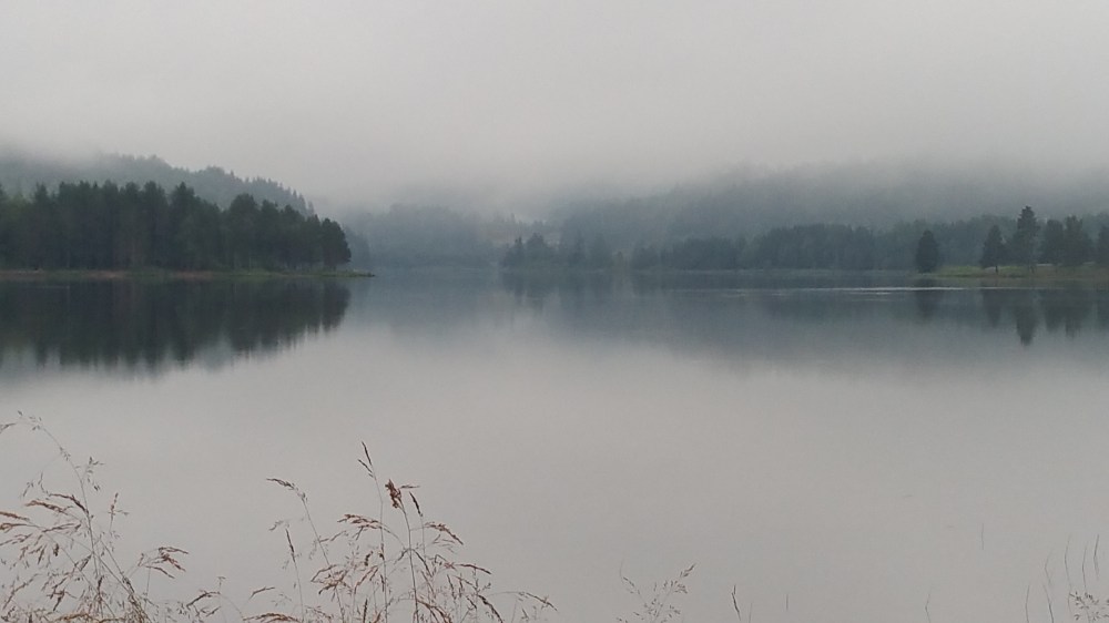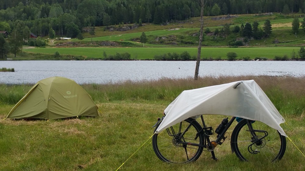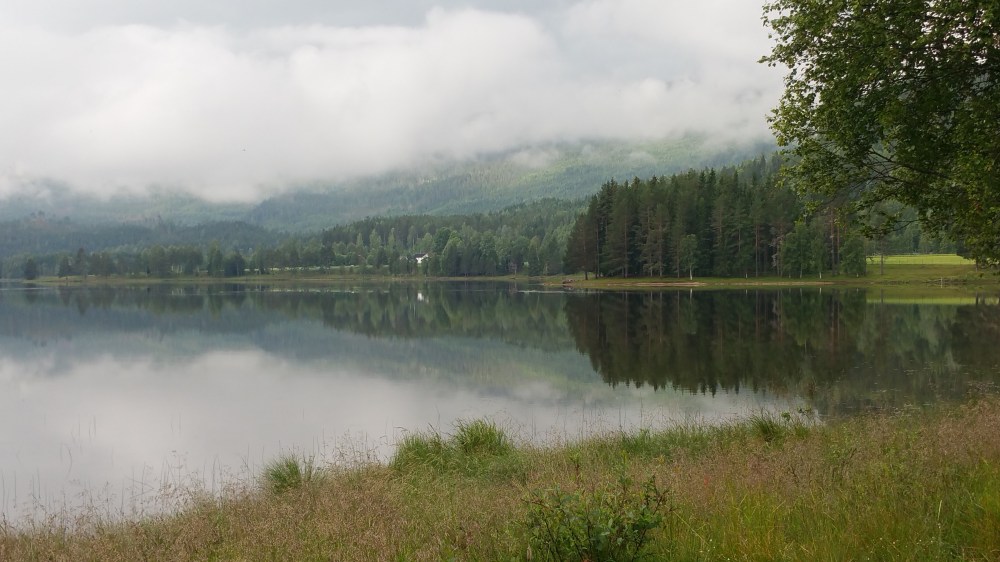Ab Kongsberg habe ich weniger Verkehr und übernachte etwas außerhalb von Kongsberg an einem Teich mit Badestelle. Hier ist es überhaupt nicht gemütlich, da ich von zwei Hauptverkehrsstraßen eingerahmt bin. 😦