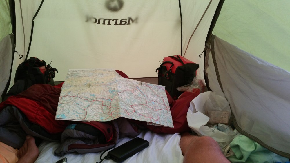 Heute Abend wird ein Regengebiet durchziehen, ich suche mir also rechtzeitig einen Zeltplatz, um mich gemütlich einzurichten.
