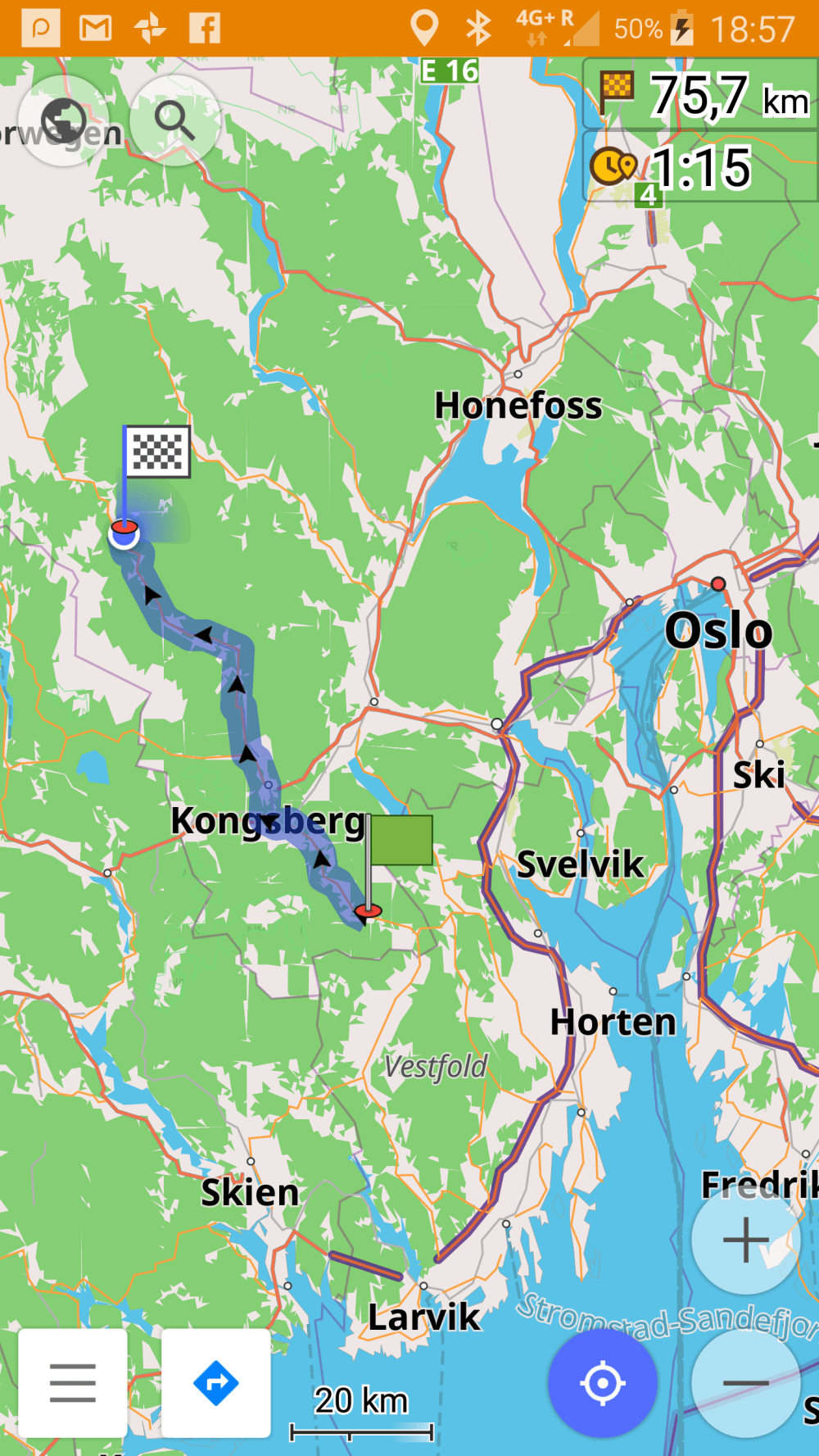 In Kongsberg tobt der Bär, da an diesem Wochenende ein großes internationales Jazz Festival stattfindet. Ich komme kaum durch die Stadt, weil einige Straßen gesperrt sind und sich der Verkehr staut. So etwas mag mein Navi gar nicht und so sind wir beide schnell gestresst.