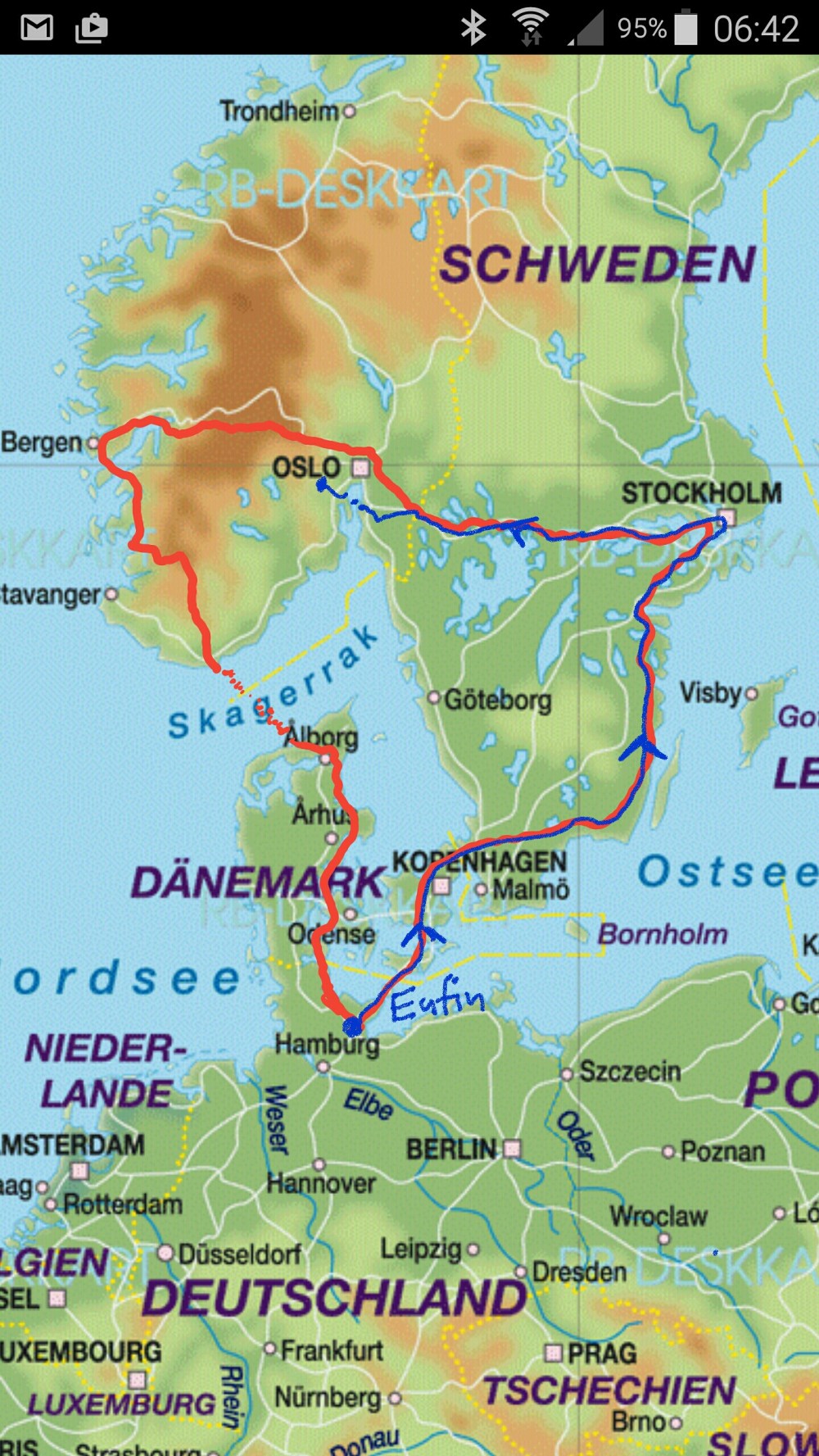Am Morgen unterhalte ich mich mit einem norwegischen Paar, das in den Bergen eine Farm bewirtschaftet. Sie berichten mir, das auf meiner Strecke neben der Straße noch Schnee liegt und ich unbedingt die Wettervorhersage beachten soll, bevor ich von Geilo aus an der Hardangervidda entlangfahre. Es kann dort oben noch sehr kalt sein.
