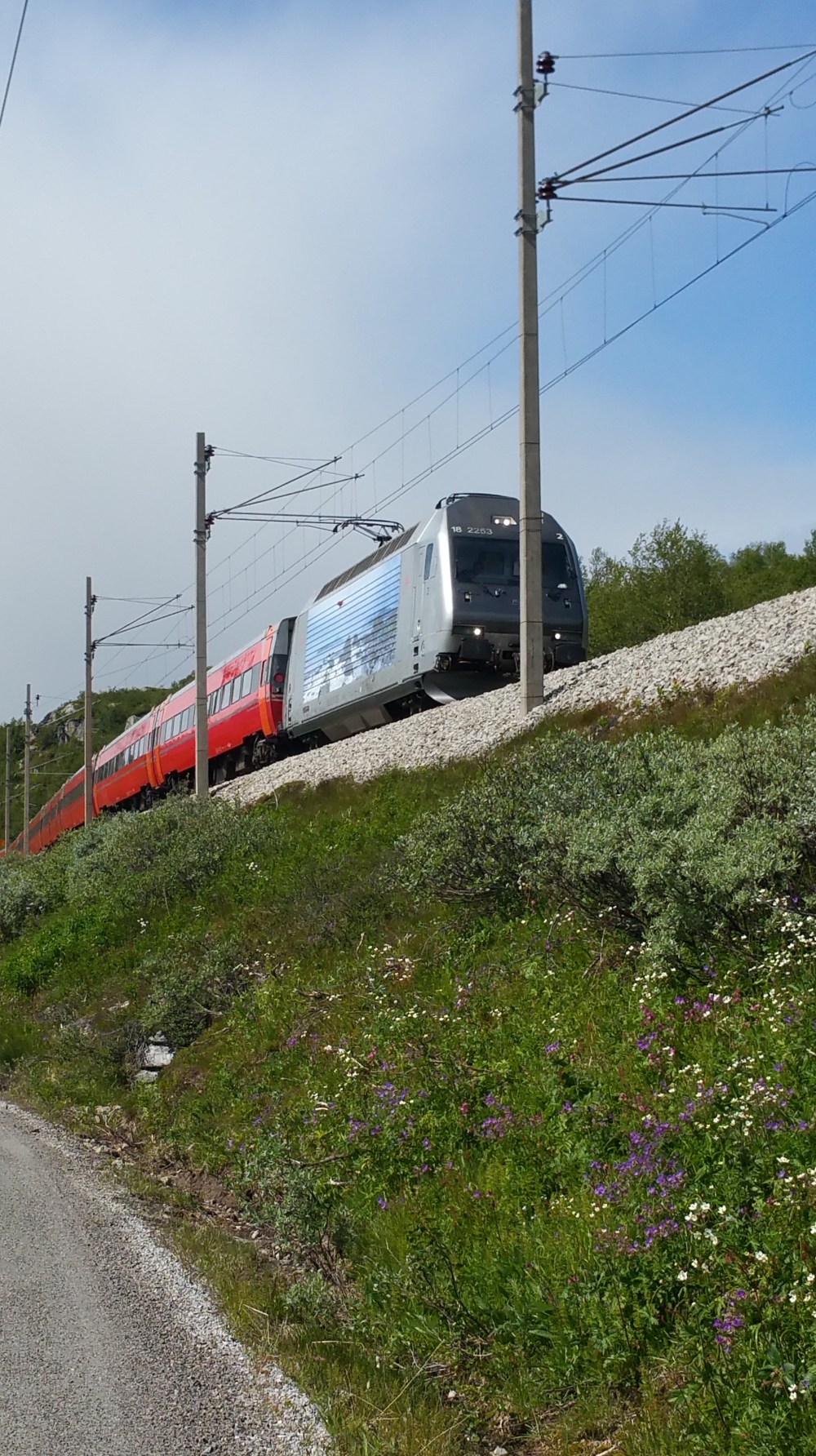Der Rallarvegen ist erst vor ein paar Tagen für die Überquerung der Hardangervidda freigegeben worden. Wegen neuer Schneefälle wird aktuell jedoch nur zum Befahren bis Finse geraten. Dann wird zur Weiterfahrt nach Bergen die Bahn empfohlen. Natürlich will ich kein Risiko eingehen und mit meinem ganzen Gepäck auch nicht auf einem Schneefeld in die Tiefe rauschen. Ich werde also mit der Bergenbahn die Weiterfahrt über die Hardangervidda genießen …