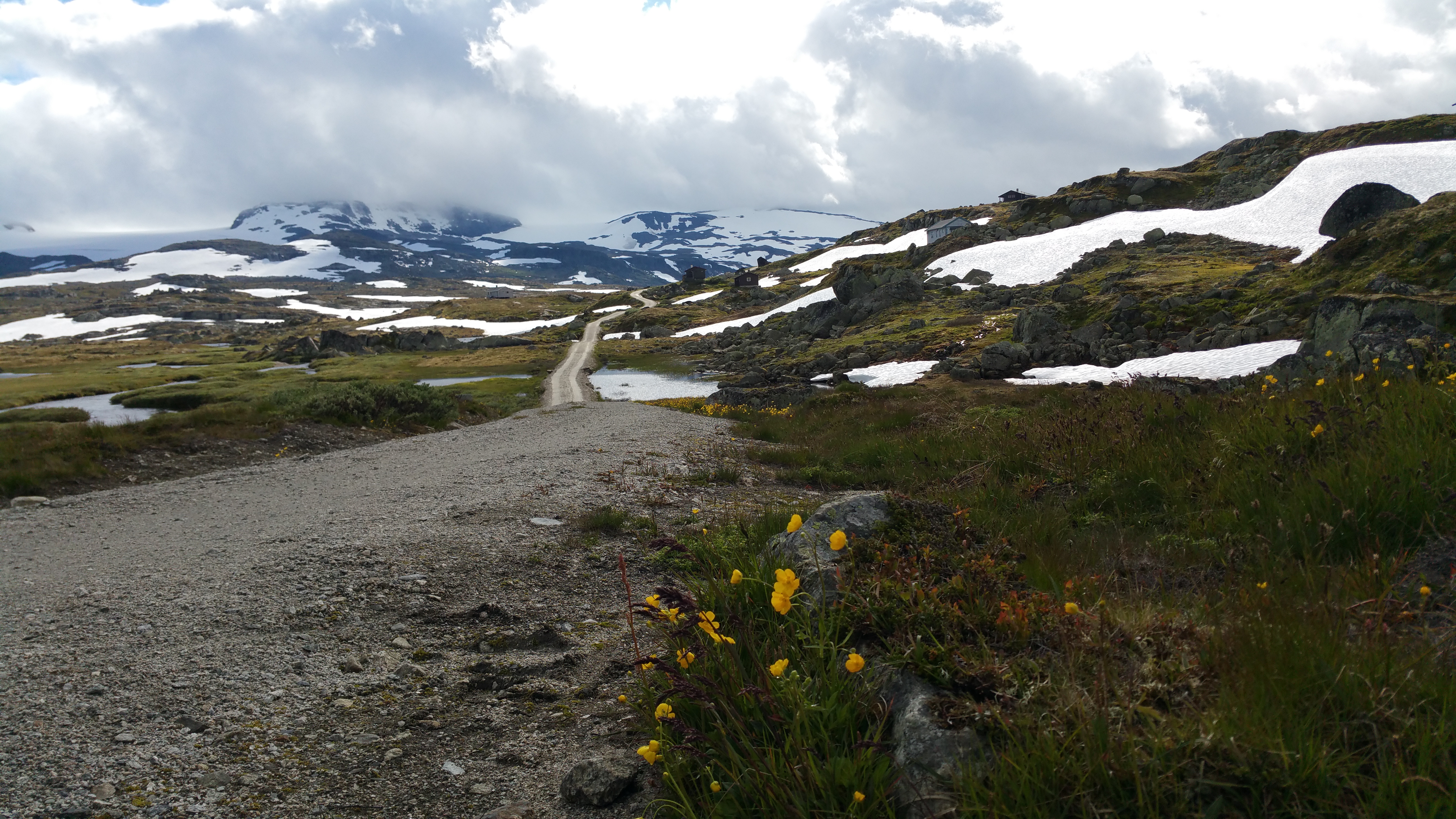 Der Rallarveg beginnt ganz gemütlich auf einem einwandfreien, gut befahrbaren Kiesweg und steigt bis Finse auf 1222 m an.