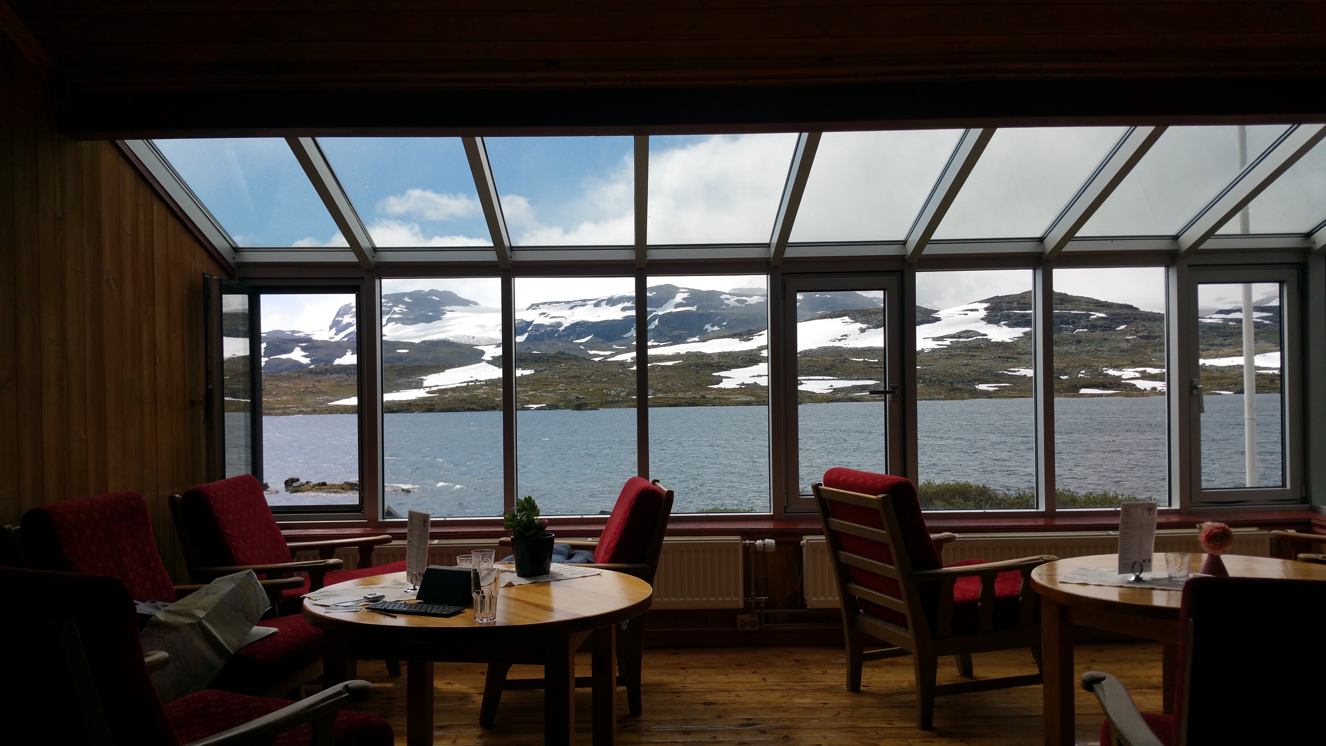 Der Abend klingt aus mit einem wunderbaren veganen Essen in der Finsehytta. Die Atmosphäre in so einer Hütte, wo Hiker und Biker aus allen Ländern zusammenkommen, ist auch wieder eine spezielle Erfahrung …