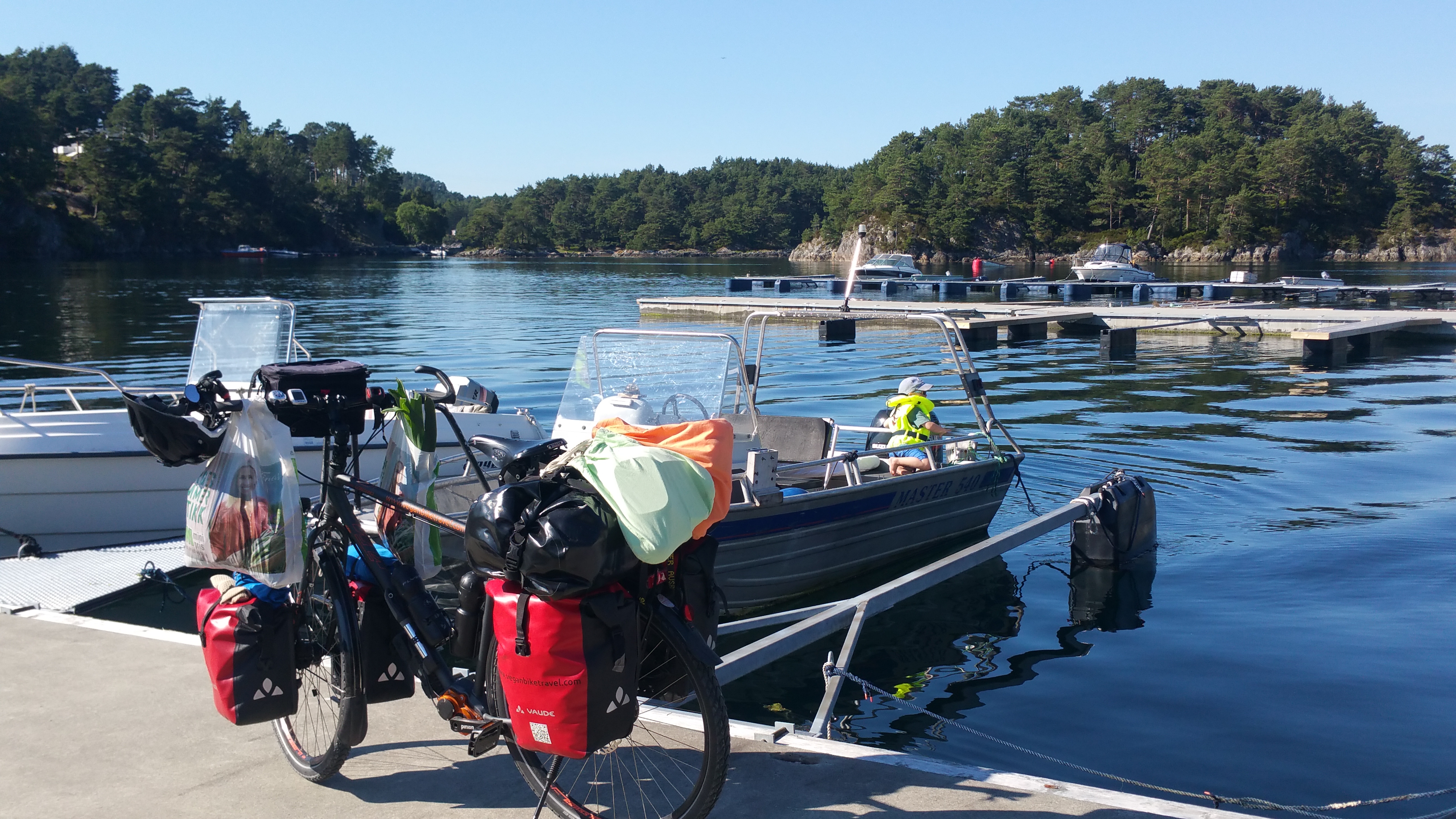 Unser Gespräch endet damit, dass er mich für eine Nacht auf die Insel Skorpo einlädt, wo seine Schwester in einem wunderschönen Haus wohnt. Ich bin begeistert und die Vorstellung, Fahrrad und Ausrüstung auf eine Insel zu transportieren, hat auch einen besonderen Charme. Zwei Stunden später treffen wir uns am verabredeten Treffpunkt und verstauen alles im Boot …