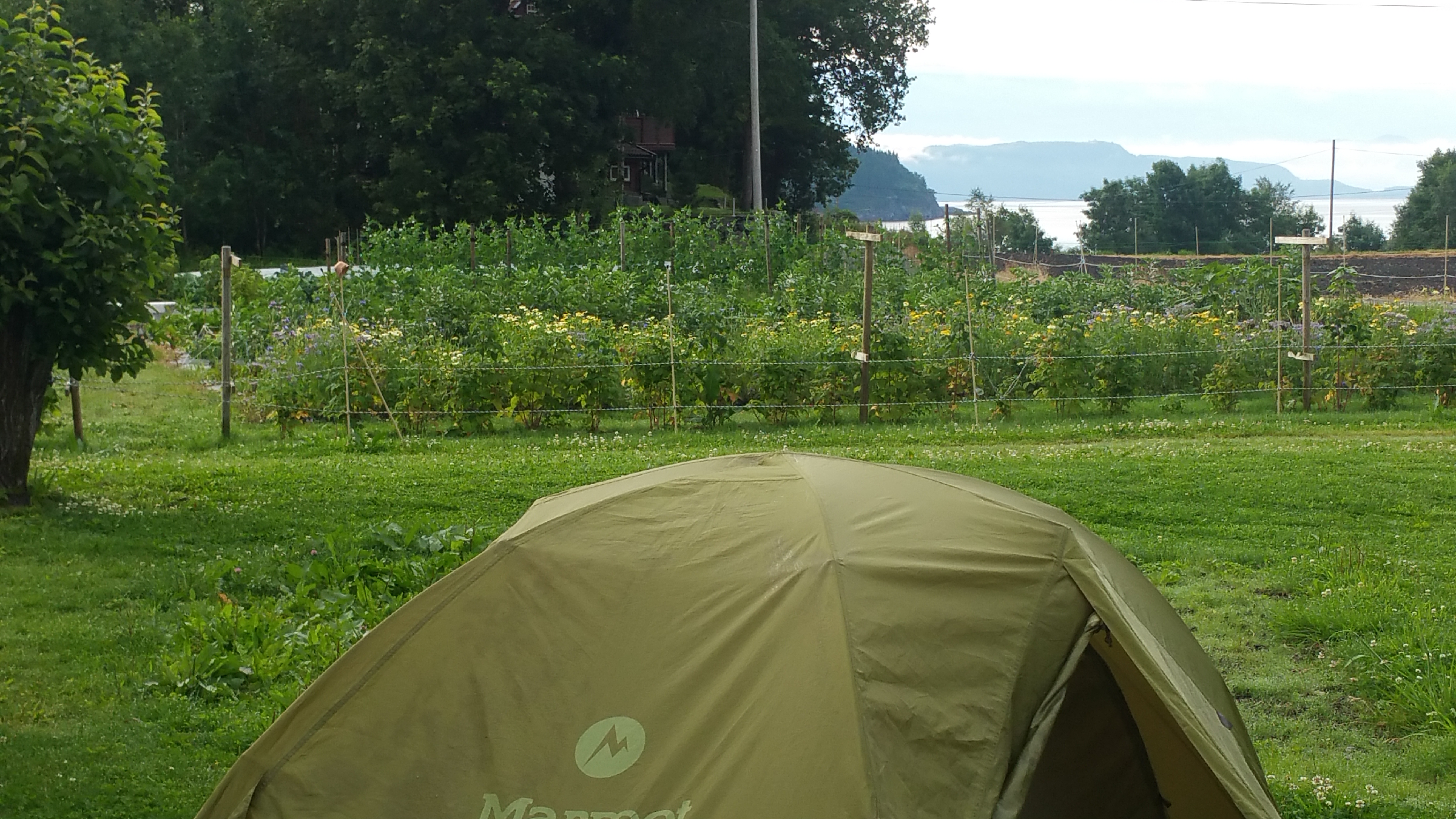 Vor einem kleinen Lebensmittelladen unterhalten sich zwei Frauen und natürlich steuere ich direkt auf sie zu. Meine Bitte um Hilfe für die Empfehlung einer Zeltmöglichkeit trifft auf engagierte Unterstützung von Anne-Grete und sie vermittelt mir einen Platz direkt neben einem tollen Gemüsegarten!