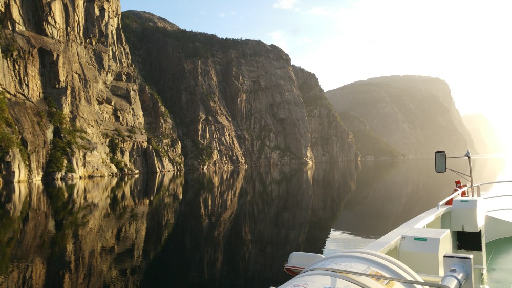 Es ist ein herrlicher windstiller Morgen und bestimmt wird es eine beeindruckende Fahrt durch den Lysefjord …