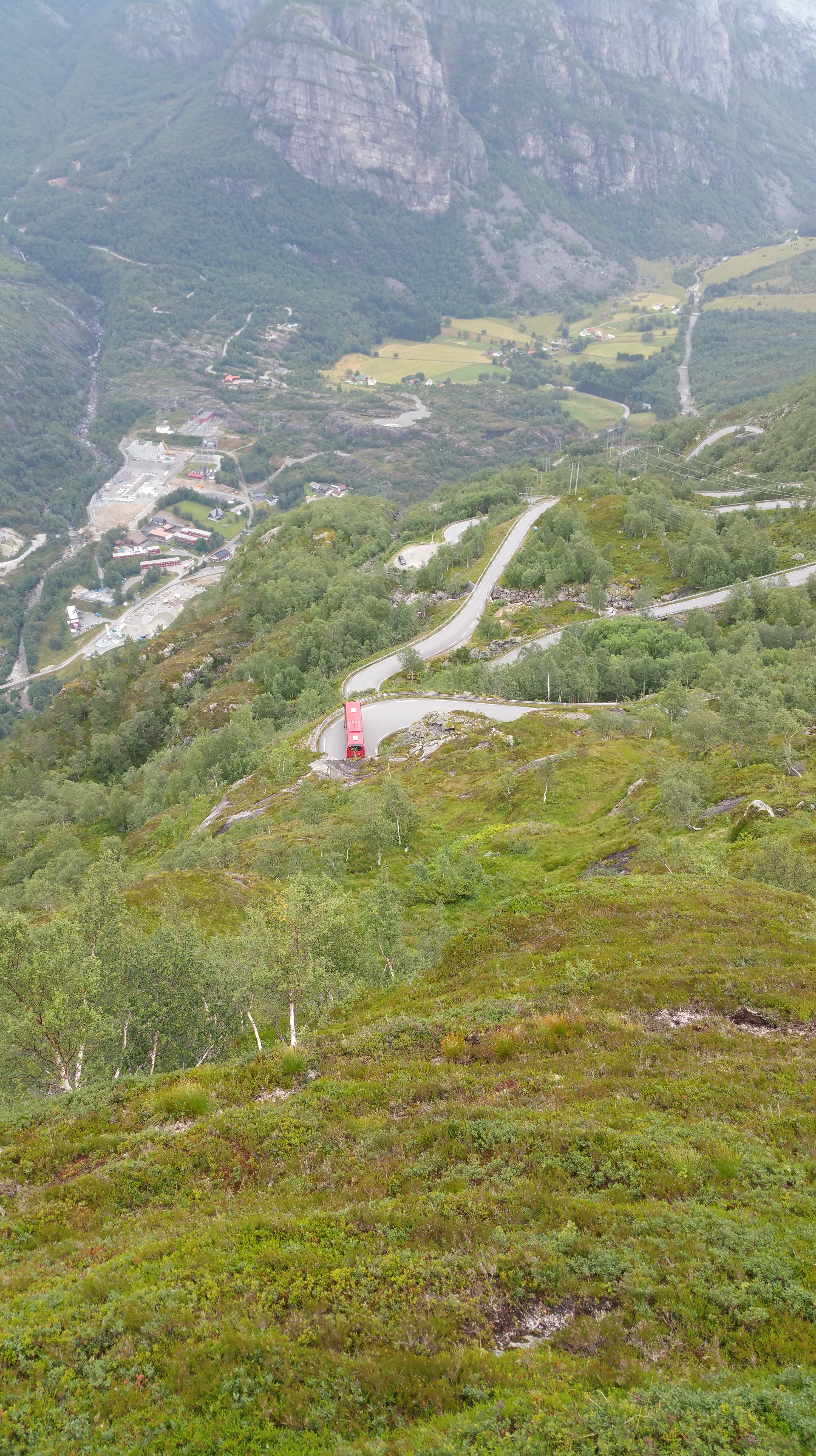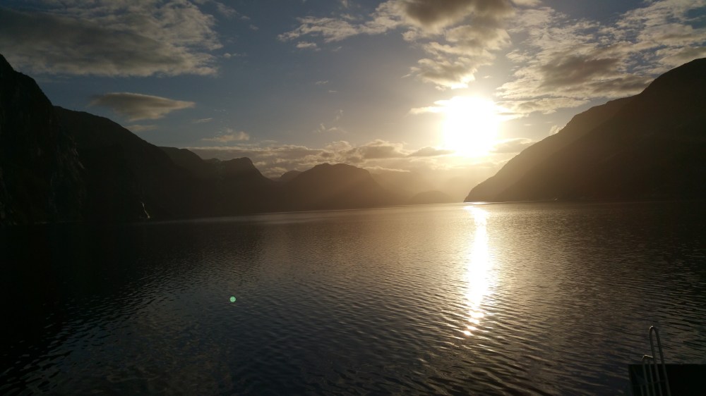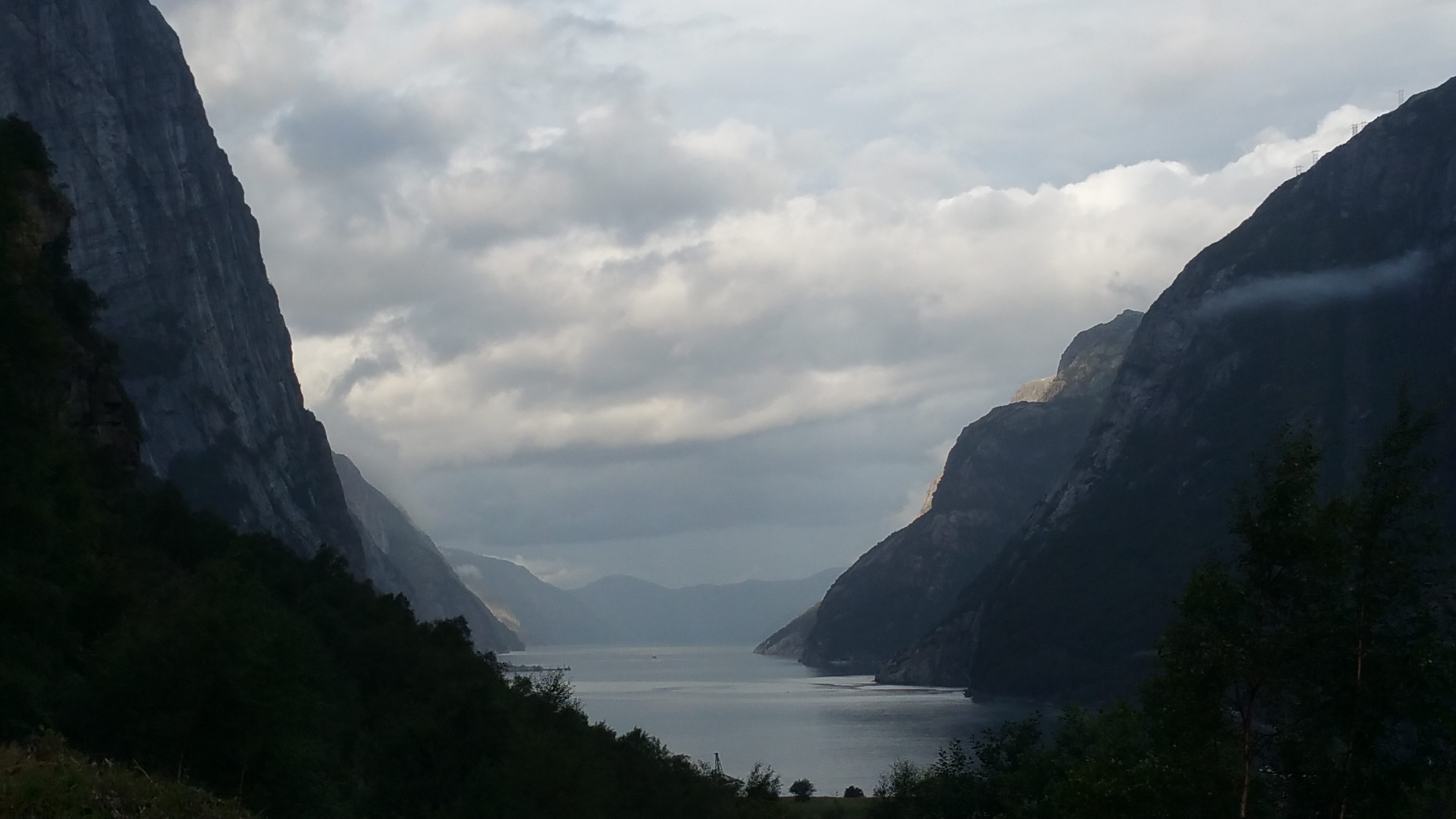 Kurz vor dem Ende des Lysefjords ragen die Felswände über 1.000 m steil aus dem Fjord empor und ich fühle mich hier sehr winzig … Für einen Moment tauchen Zweifel auf, ob ich es schaffen kann, diese Höhe mit meinem schweren Rad zu erklimmen. Ich beruhige mich mit dem Gedanken, dass ich ja jederzeit wieder bergab fahren kann … Mein Herzenswunsch und meine Entschlossenheit sind mit dieser Antwort nicht so ganz zufrieden …;-)