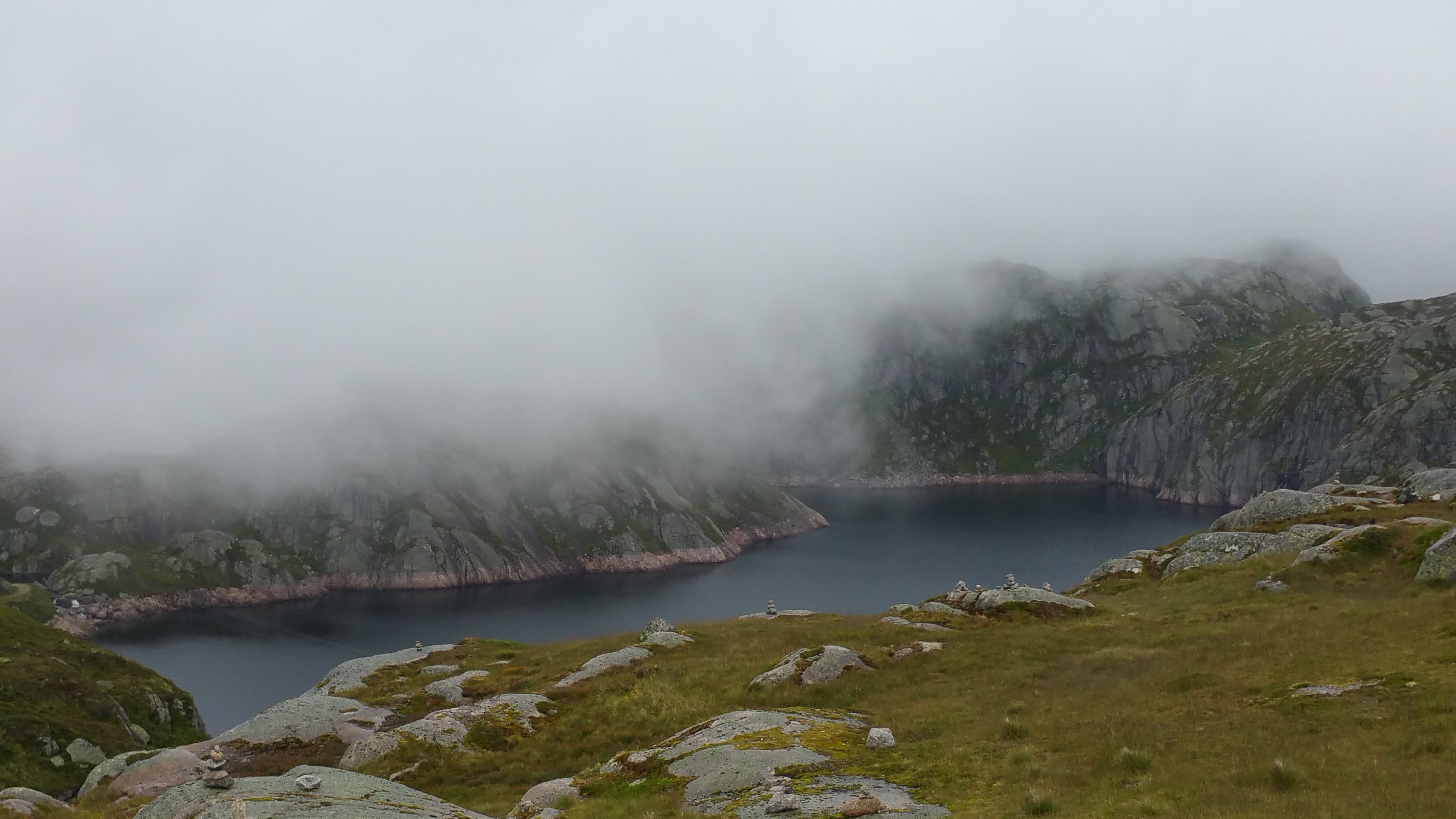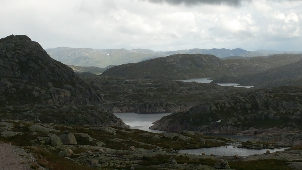 Hier oben befindet sich auch der eingeklemmte Felsen Kjerag, von dem man einen grandiosen Blick in den Lysefjord hat. Rasmus und Christian wissen wovon ich rede, denn wir standen schon auf diesem Felsen ….