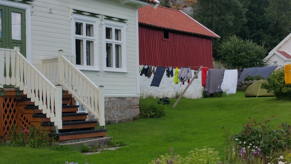 Ich kann meine ganzen nassen Sachen nach dem hektischen morgendlichen Zeltabbau und der Regenfahrt trocknen,