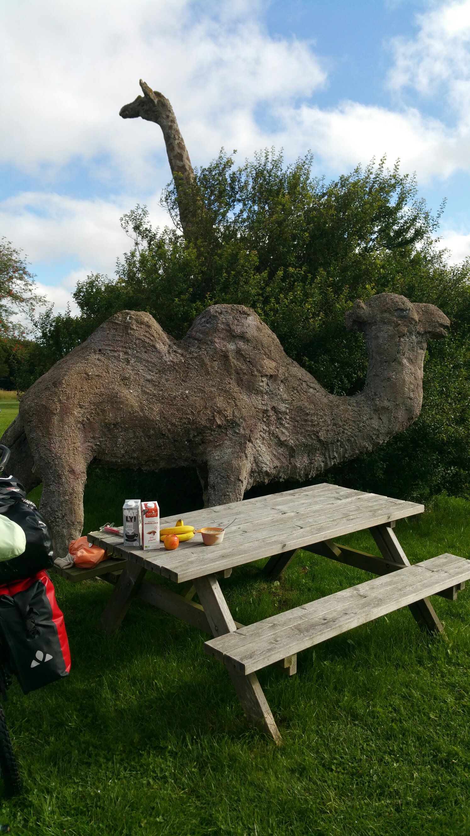 Das ist sicher eine wunderbare Möglichkeit, um jung zu bleiben. Nils hat fünf Kinder, seine Frau ist vor 17 Jahren verstorben und seine drei Töchter leben in seiner Nähe. Die Begegnung mit Nils verläuft sehr amüsant, weil wir uns nicht verständigen können! Dank Google-Übersetzer schaffen wir es dann doch, weil wir abwechselnd etwas meinem Smartphone erzählen. Für das Gästebuch muss ich eine Skizze meiner gesamten Radreise anlegen.