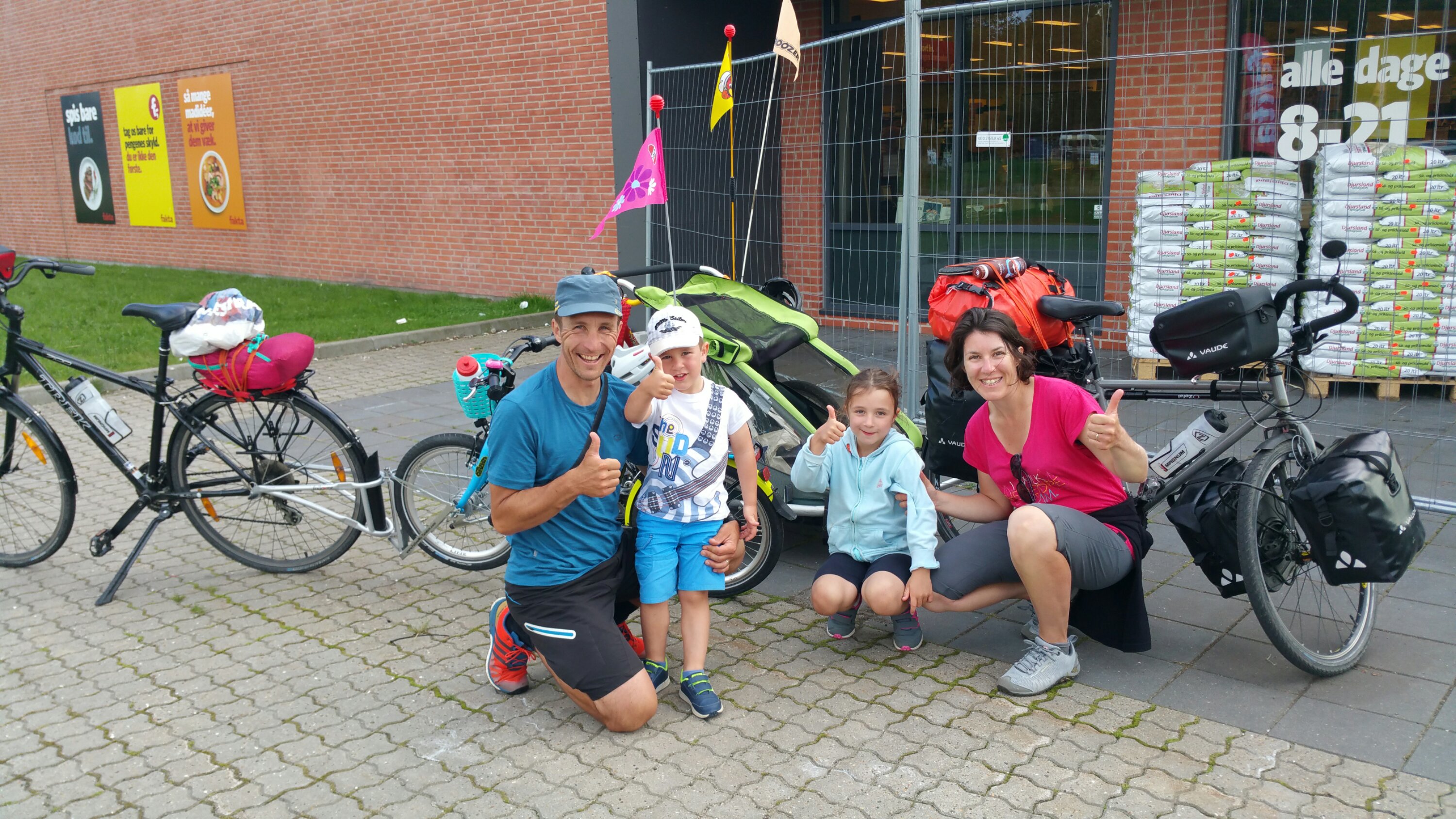 Frisch geduscht fahre ich nach Elling, um ein paar Kekse zu kaufen und treffe vor dem Supermarkt Familie Dupuis aus Frankreich ,,,