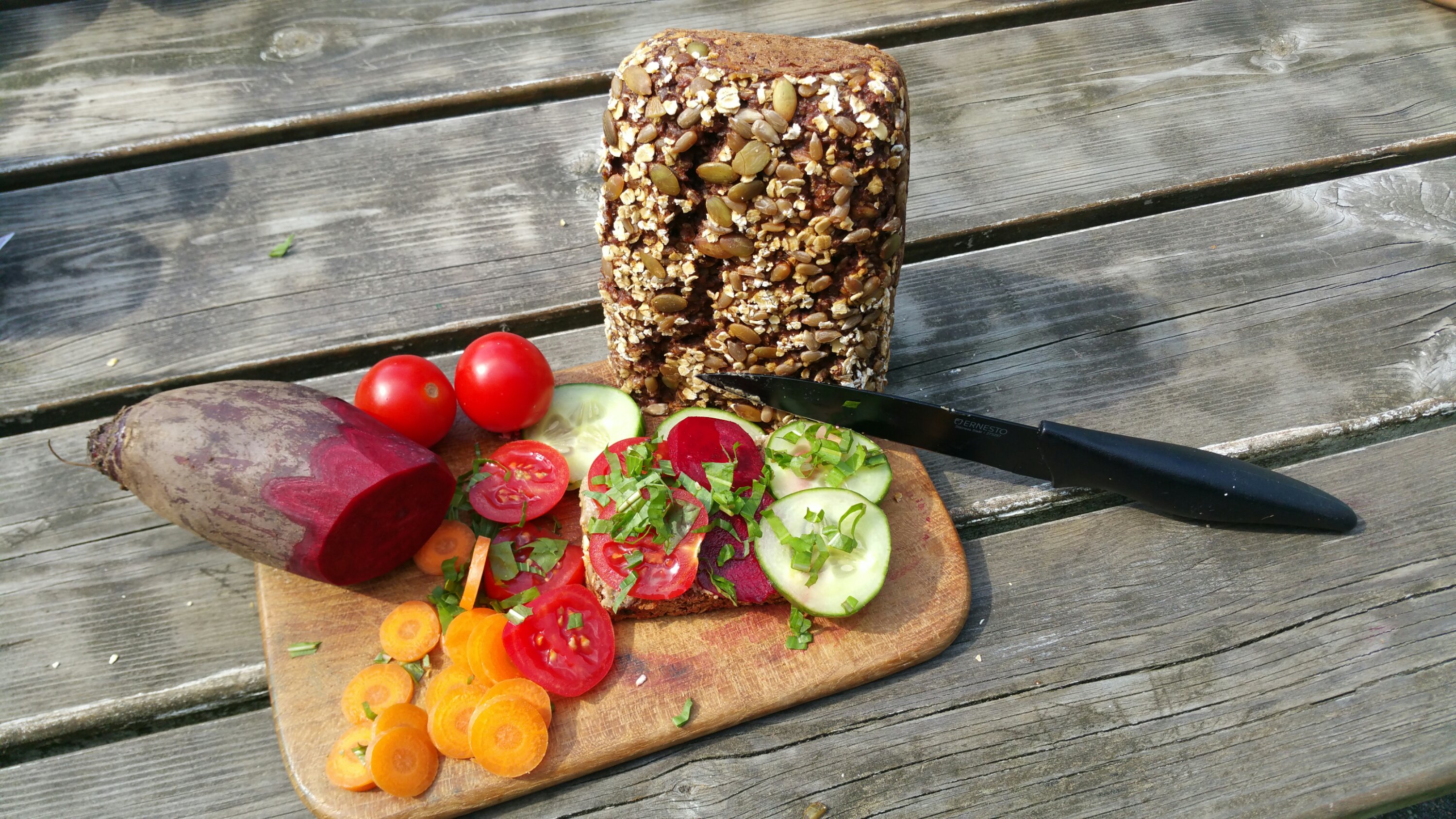 Mein Abendbrot genieße ich bei Sonnenschein im Garten und bin sehr froh, dass ich nun wieder mehr Wildkräuter finde und ungesüßtes Vollkornbrot essen kann …