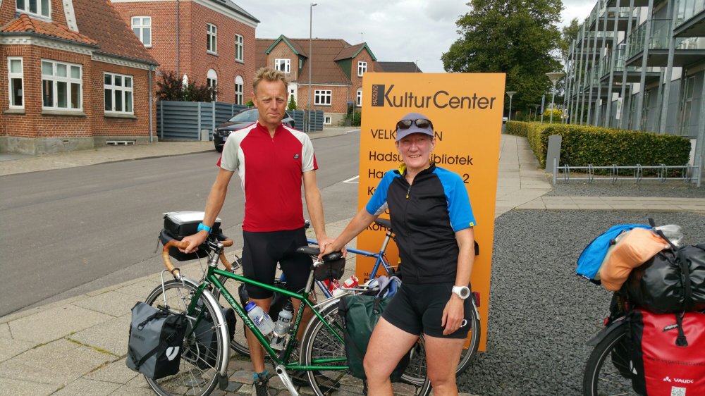 In Hadsund treffe ich vor der Bibliothek ein Paar aus England.