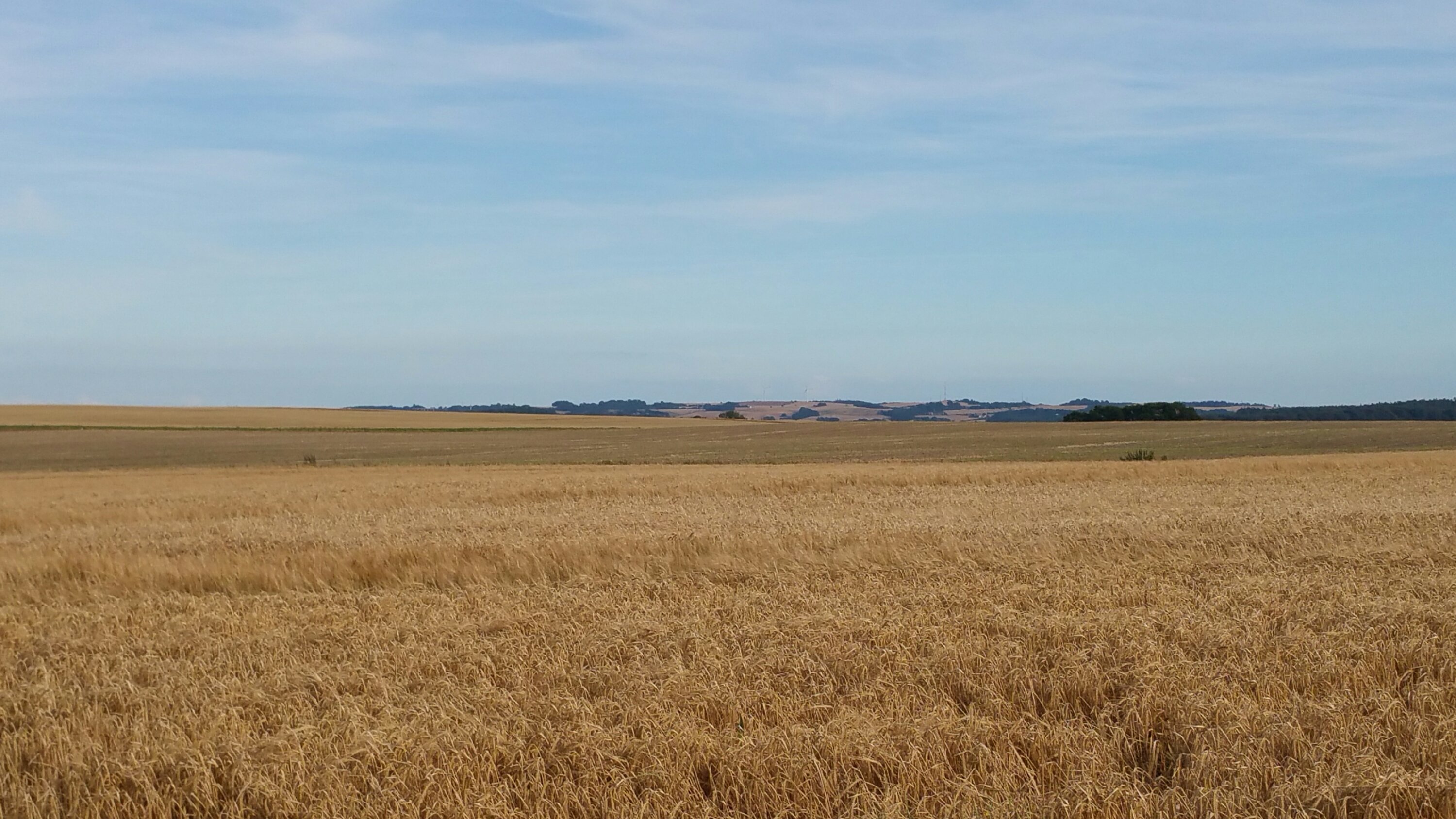 Über 30 Kilometer fahre ich meistens ohne jeglichen Windschutz und sehe viele durch Windbruch zerstörte Getreidefelder …