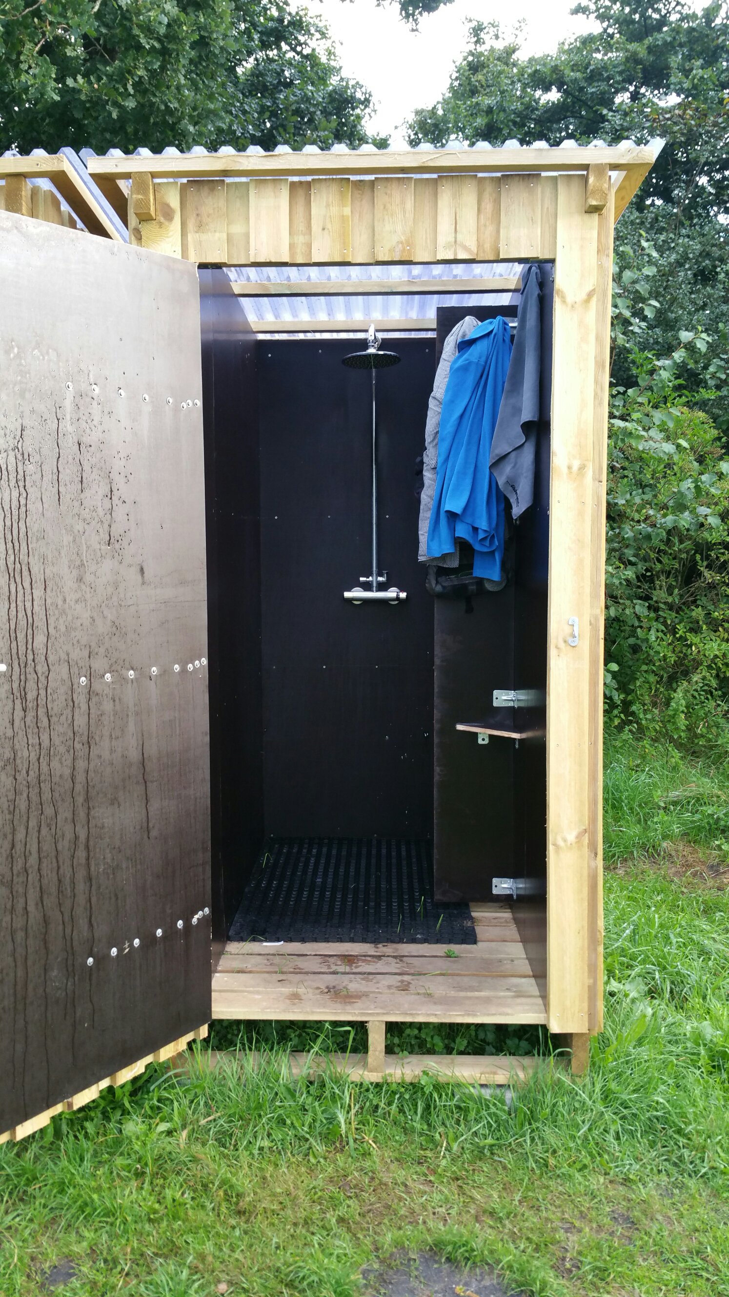 Unser heutiges Highlight ist jedoch, dass Romain zwei neu errichtete Duschkabinen am Wiesenrand entdeckt, die wir zunächst für Toilettenhäuschen gehalten haben!