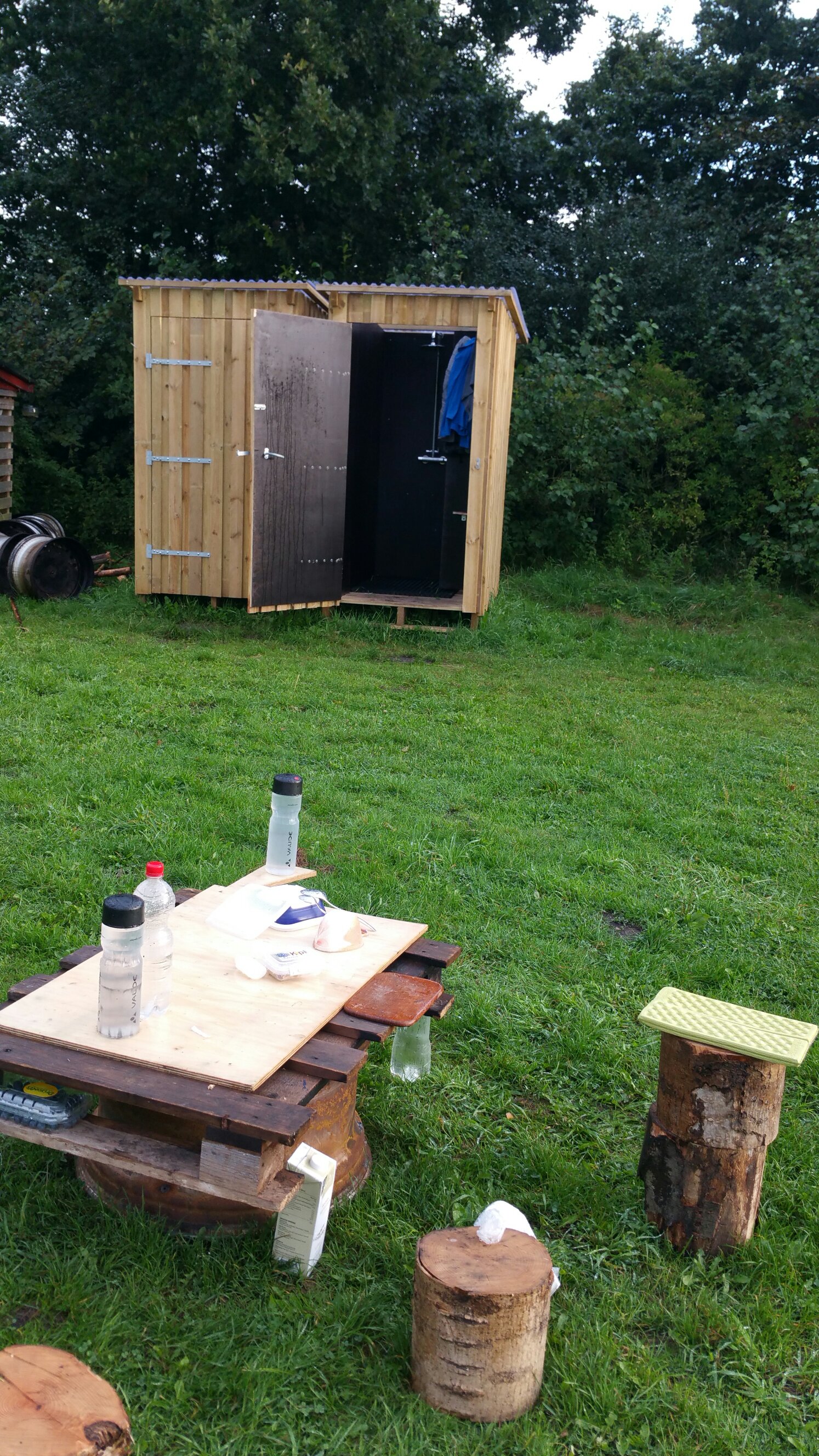 Jeder belegt ein ‚Duschhaus‘ und wir beginnen gleichzeitig zu duschen, weil wir nicht wissen, wie lange das warme Wasser reicht … 😉