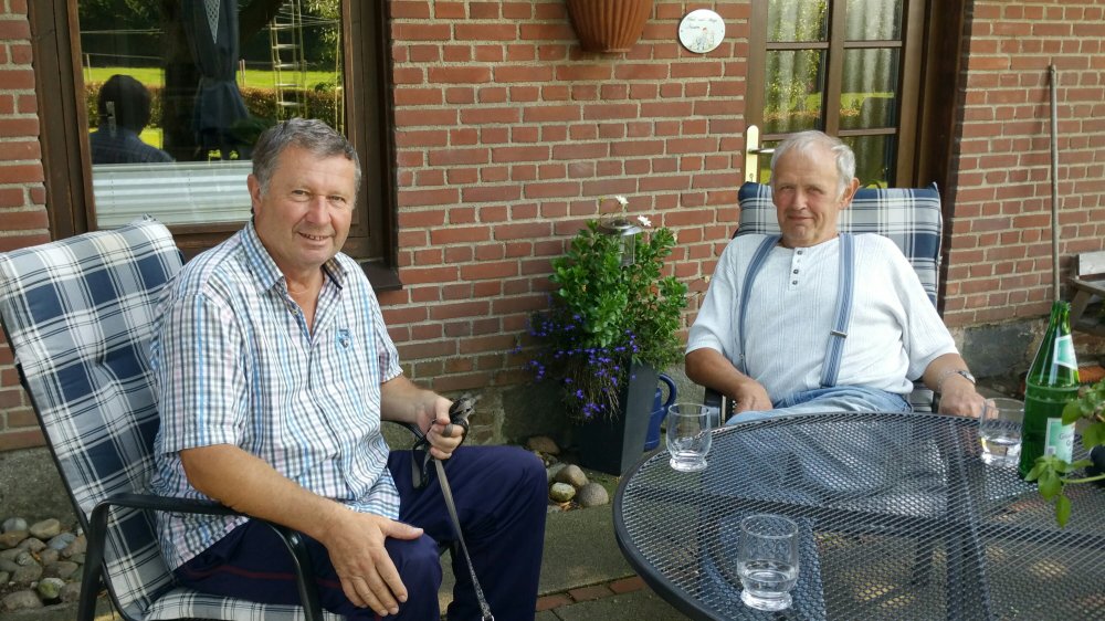 Gert und Klaus stehen auf der schmalen Straße und schnacken mich an, als ich mich ihnen am Berg langsam nähere.