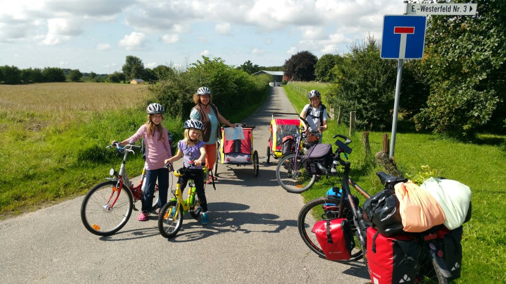 Familientour mit Zelt und allem, was gebraucht wird. Das gefällt mir natürlich sehr! Wir plaudern ein wenig und dann trennen sich unsere Wege wieder.